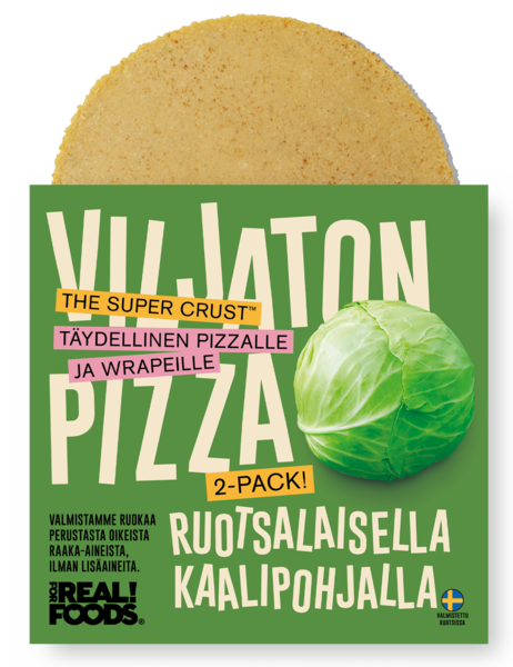 GluteenitonPaikallisesti viljellystä valkokaalista valmistetut leivättömät pizzapohjat. Viljaton ja gluteeniton. Vähähiilihydraattinen, proteiini- ja kuitupitoinen. 100 % luonnollisia ainesosia. Allergeenivapaa. Äkta Varan hyväksymä.