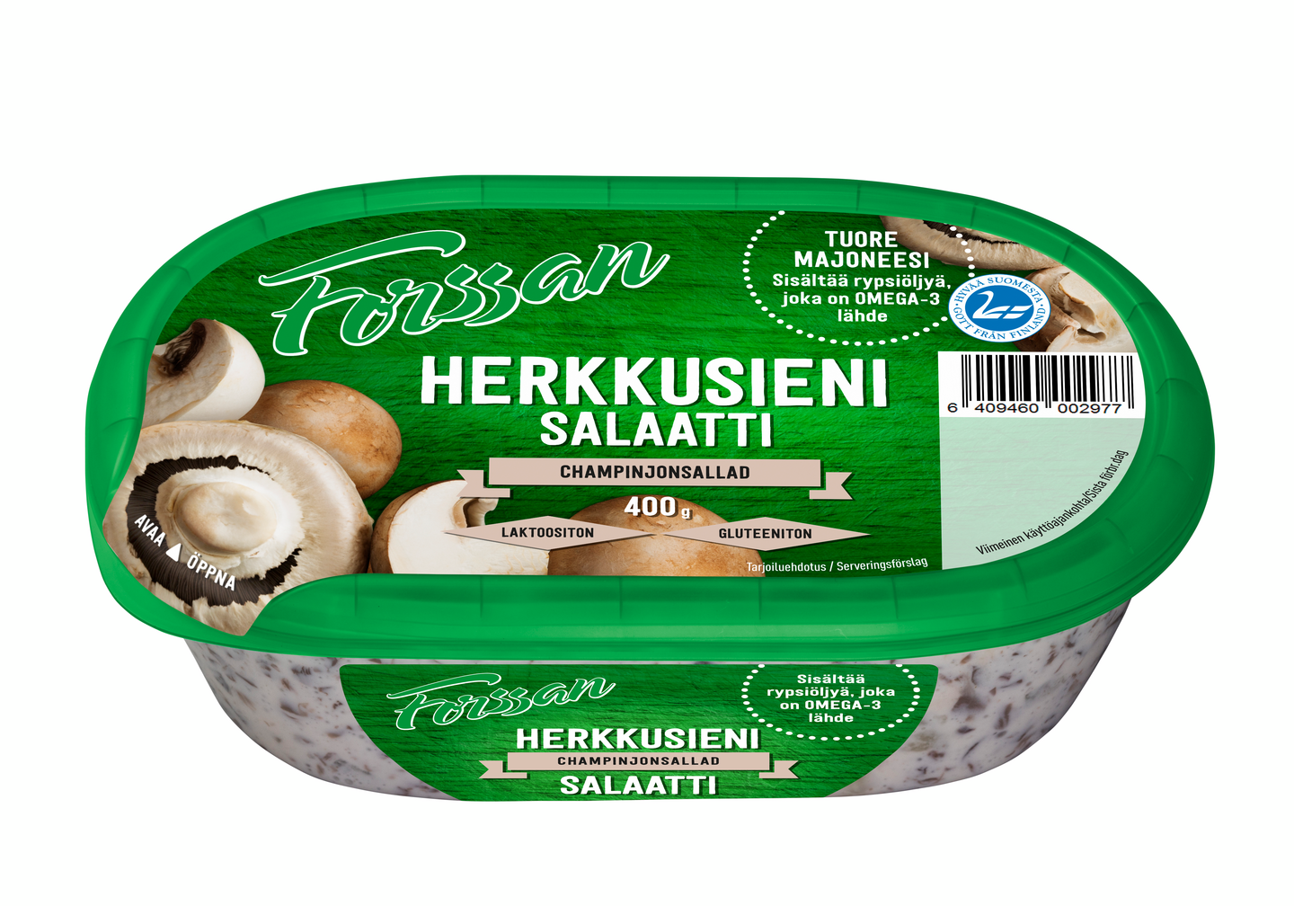 Täyteläinen herkkusienisalaatti maistuu joulupöydässä, blinien täytteenä, lisukkeena ja myös arkena leivän päällä. Salaatti on valmistettu tuoreeseen majoneesiin ja herkkusieniin, lisäksi makumaailmassa yhdistyvät säilykekurkku ja sipuli. Vaikka herkkusienisalaatti onkin erityisen suosittu joulupöydässä, se ei ole sesonkituote vaan ostettavissa ympäri vuoden. Maukas herkkusienisalaatti sopii myös grilliherkkujen kaveriksi. Herkkusienisalaattia voidaan käyttää jopa voileipäkakun täytteenä. Valmistujaisten tai merkkipäivien juhlapöytään herkkusienisalaatti sopii sellaisenaan. Juhlallisemman version salaatista saa koristelemalla se esimerkiksi silputulla ruohosipulilla. Forssan Herkkusienisalaatti on pakattu kätevään rasiaan, joka on helppo kuljettaa ulos piknikille tai grillikatoksen alle.