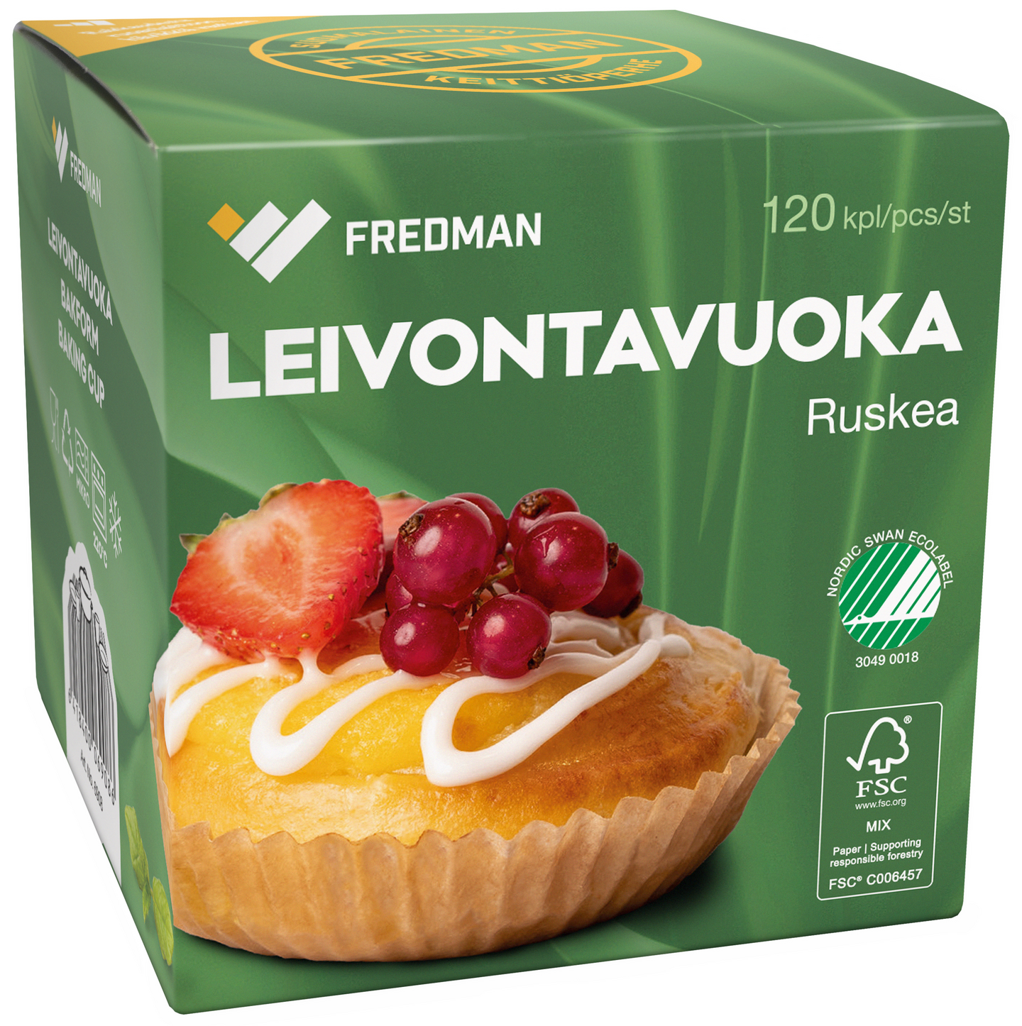 Fredman leivontavuoan avulla leivot makeat ja suolaiset leivokset juhlapöytään. Leivontavuoka on mikron, uunin ja pakastuksen kestävä. Pakkauksessa on 120 vuokaa, joiden pohjan halkaisija on 60mm.
