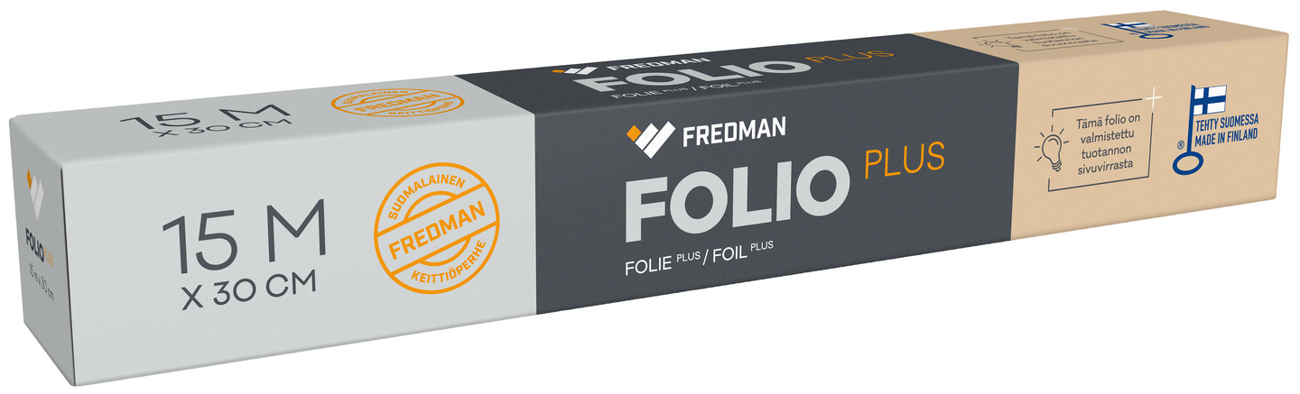 Fredmanin Plus-tuoteperhe tarjoaa tuttuja arjen tuotteita uudella twistillä ominaisuuksista tinkimättä. Kotimainen Fredman folio plus säilyttää parhaat maut ruoanlaitossa ja -säilytyksessä.