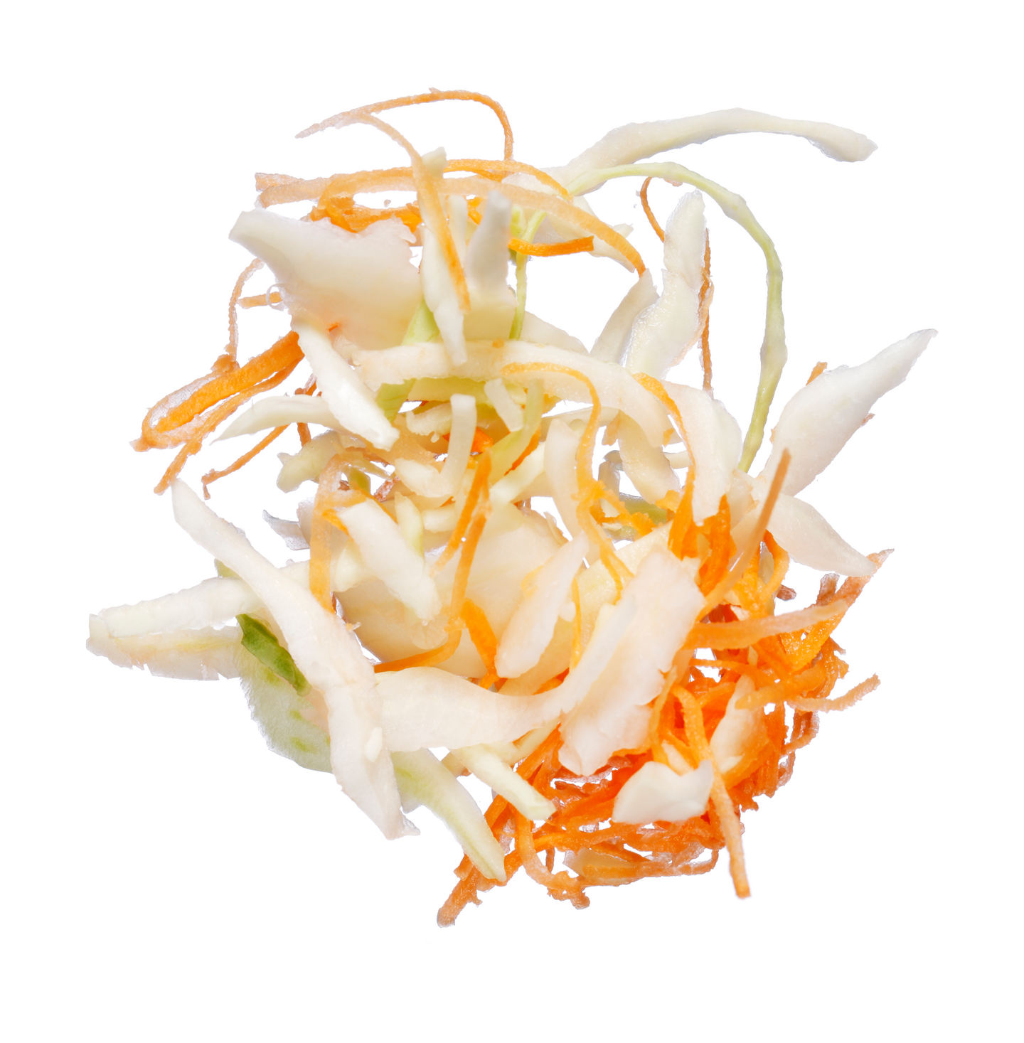 Valkokaali 80%, porkkana 20%. Saattaa sisältää jäämiä muista vihanneksista.