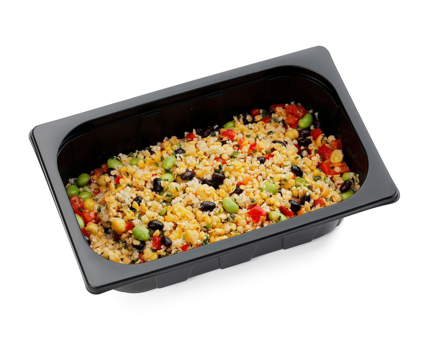 Papumix (SOIJAPAPU, mustapapu, keitetty kikherne, rypsiöljy, suola, sitruunamehutiiviste, sitruunankuori, mustapippuri), linssi 27,8 %, kvinoa 16,6 %, paprika, rypsiöljy, valkoviinietikka, ruohosipuli, sokeri, sitruunamehu, suola, muunnettu tärkkelys (tärkkelys, maltodekstriini, sakeuttamisaine (E412), auringonkukkaöljy)