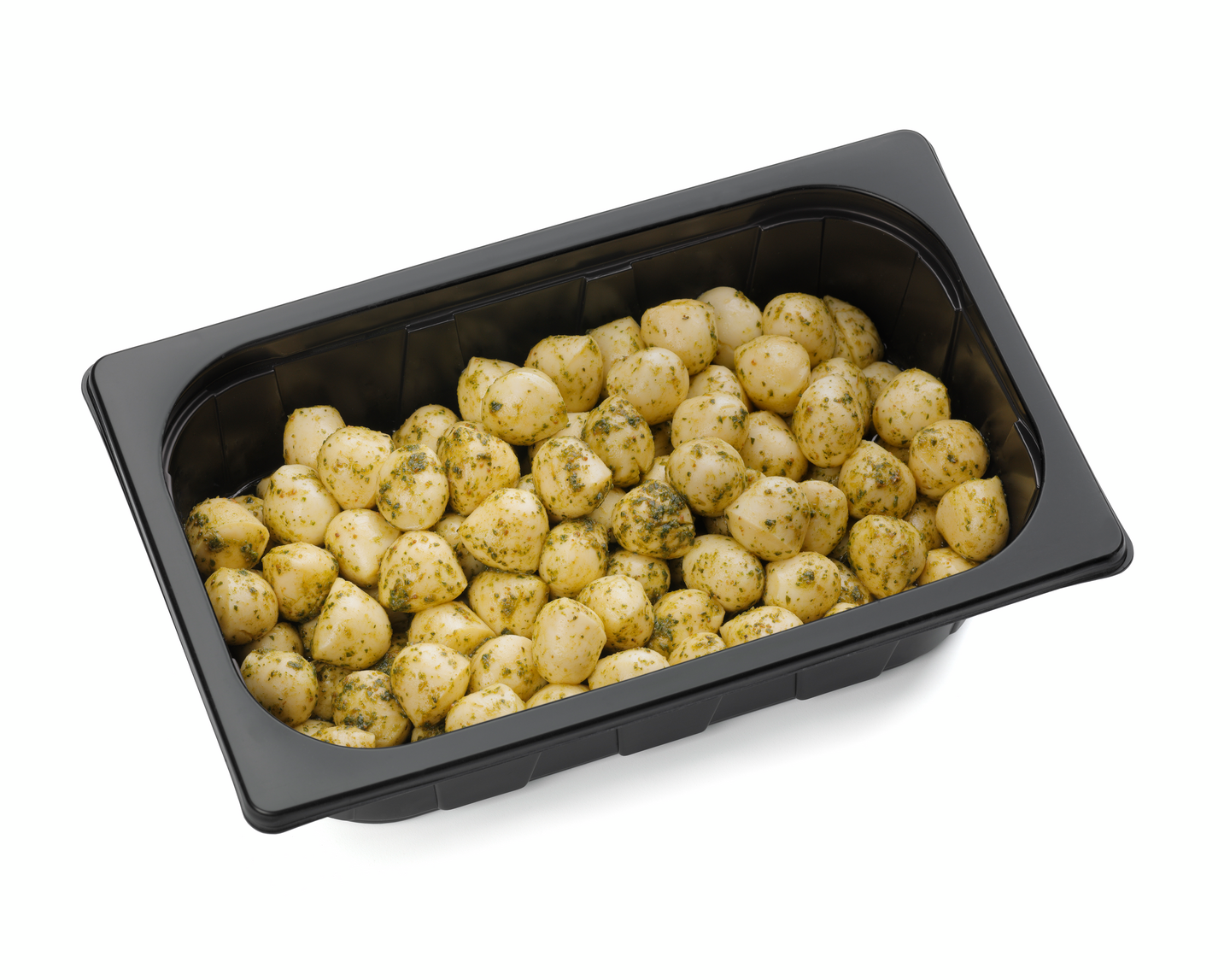 Mozzarella 88 % (pastöroitu MAITO, juoksute, suola, happamuudensäätöaine (E330)), rypsiöljy, pestokastike 5 % (basilika, rapsiöljy, oliiviöljy, auringonkukansiemen, vaalea balsamietikka (viinietikka, rypälemehutiiviste), suola, valkosipuli, sokeri, mustapippuri, JUUSTOAROMI, happamuudensäätöaineet (E330, E300), muunnettu maissitärkkelys, säilöntäaineet (E202, E211))