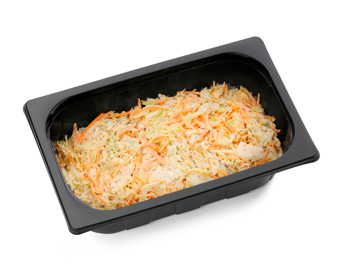 Valkokaali 48 %, sinappimajoneesi 31 % (majoneesi (rapsiöljy, vesi, KANANMUNANKELTUAINEN, etikka, sokeri, suola, sakeuttamisaine (E415), sitruunamehutiiviste, aromi, hapettumisenestoaine (E385), paprikauute), Dijon-sinappi 6,2 % (vesi, SINAPINSIEMEN, viinietikka, suola, säilöntäaine (KALIUMMETABISULFIITTI), happamuudensäätöaine (E330), mauste), ranskankerma (pastöroitu KERMA, muunnettu maissitärkkelys, sakeuttamisaineet (E410, E412, E440), hapate), hunaja, limemehu, persilja, suola, mustapippuri), porkkana, suuruste (muunnettu perunatärkkelys, perunatärkkelys, maltodekstriini, sakeuttamisaine (E412), auringonkukkaöljy)