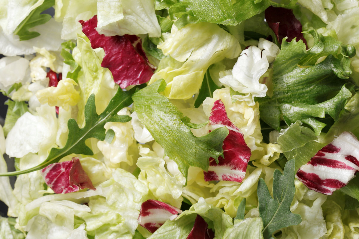 Salaattisekoitus 90 % (jäävuorisalaatti (ES/NL/FI/DE), jääsalaatti (FI)), punasalaatti 10 % (FI/NL/IT) Saattaa sisältää jäämiä muista vihanneksista.