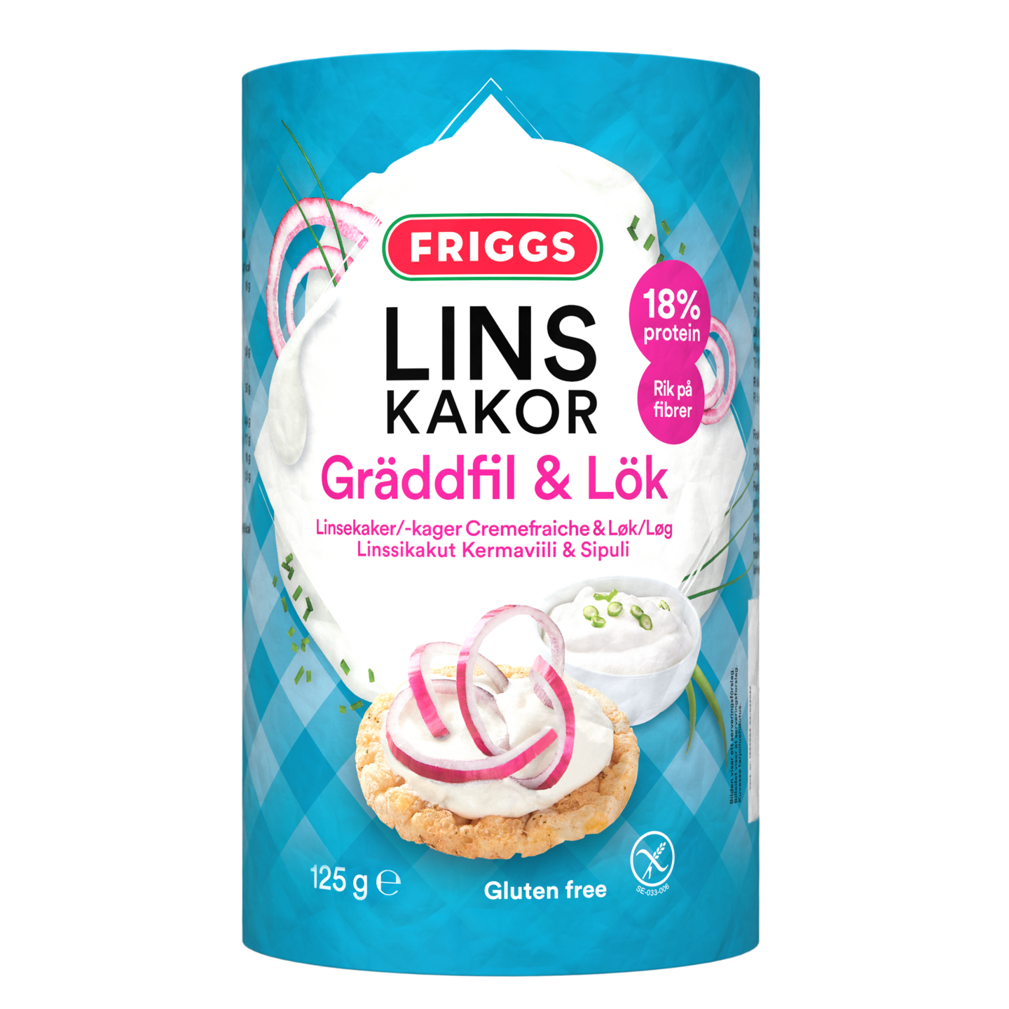 Linssijauho (47%), maissijauho, rypsiöljy, maissi, kermaviilin ja sipulin makuinen mausteseos 8,9% (herajauhe (MAITO), suola, KIRNUMAITOJAUHE, juustojauhe (JUUSTO, herajauhe (MAITO)), sipulijauhe 12%, tomaattijauhe, dekstroosi, valkosipulijauhe, aromi, happo (omenahappo), hiivauute, persilja, happamuudensäätöaine (natriumasetaatti), cayennepippuri, väriaine (paprikauute)). Saattaa sisältää jäämiä soijasta ja seesaminsiemenistä.