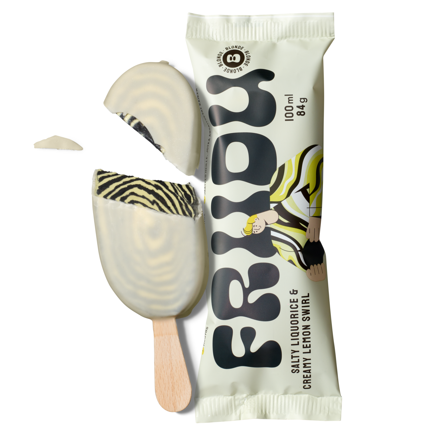 VegaaninenBlondi Friidu valloittaa! Kermainen sitruunajäätelö ja koukuttavan intensiivinen salmiakkijäätelö saivat ylleen ihanan vaalean kuorrutteen. Ja mikä parasta: kaikki Friidu-jäätelöt ovat täysin kasvipohjaisia.