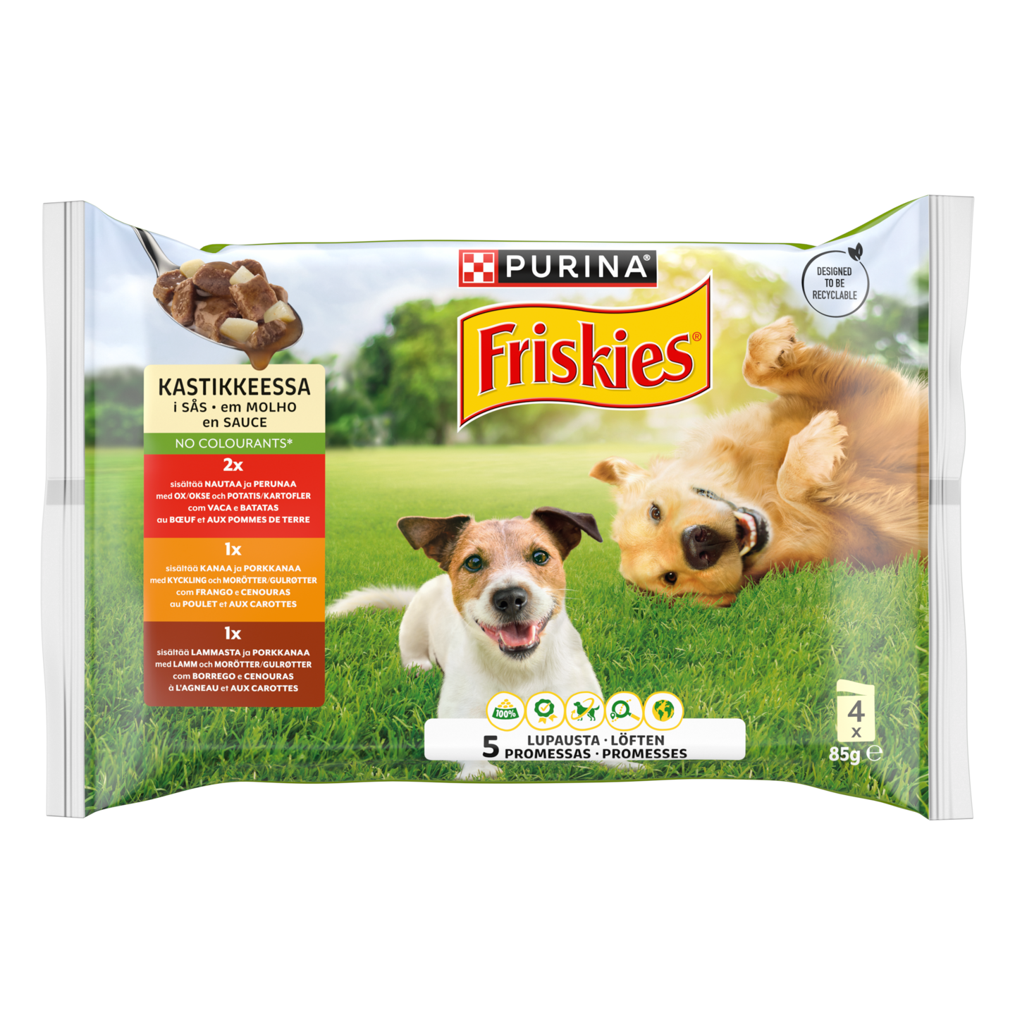 Friskies 4x85g adult nautaa, lammasta ja kanaa kastikkeessa lajitelma 3 varianttia