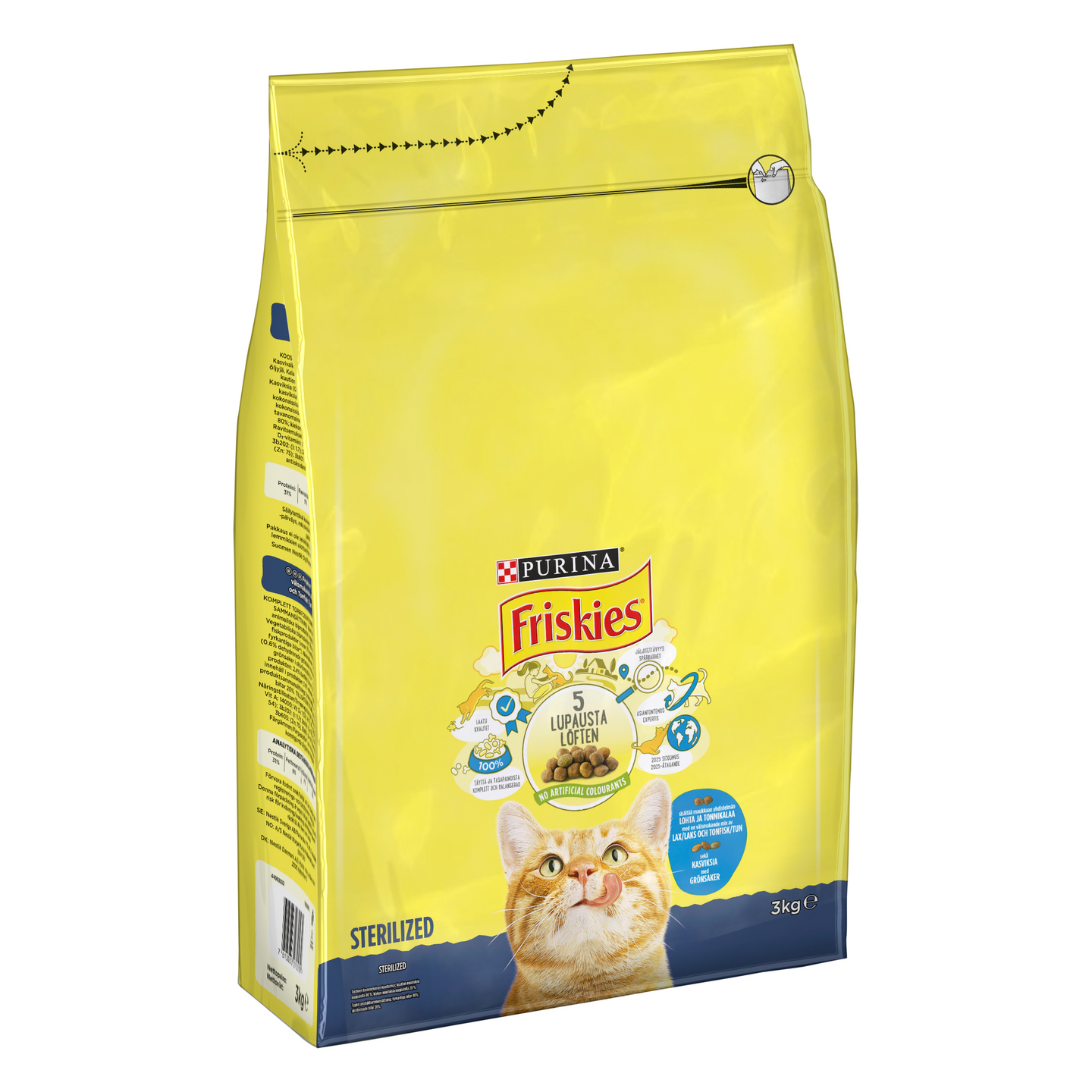 Friskies Sterilised on 100 % täyttä ja tasapainoista ravintoa, joka on suunniteltu erityisesti kastroitujen ja steriloitujen kissojen tarpeisiin ja edistämään niiden terveyttä. Sen tasapainoinen proteiinin ja rasvan suhde auttaa kissan ihannepainon ylläpidossa. Hyvä kivennäisaine- ja vitamiinitasapaino edistää kissan virtsateiden terveyttä ja tukee sen luonnollista vastustuskykyä.