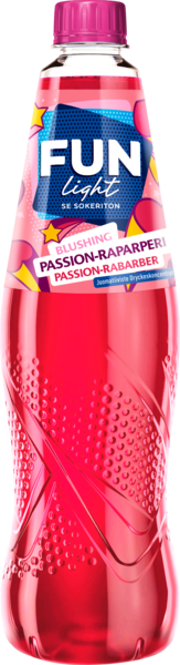 VegaaninenFUN Light passiohedelmän ja raparperin makuinen juomatiiviste. Nämä maut täydentävät toisiaan tuloksena raikas, sokeriton janonsammuttaja joka sopii kaikkiin vuorokauden hetkiin. Huomioimme ympäristön ja siksi pullossa on tietysti myös pantti. Puolen litran FUN Light juomatiivistepullosta saa neljä litraa valmista raikasta juomaa.