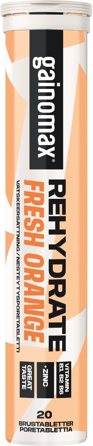 Appelsiinin makuinen juoma nestetasapainon palauttamiseen. Poretabletti neste- ja suolatasapainon palauttamiseen fyysisen aktiivisuuden tai kuumassa ilmastossa oleskelun yhteydessä, kun hikoilet paljon. Gainomaxporetabletti sisältää yhdistelmän tunnettuja elektrolyyttejä (natrium, kalium, kloridi), sekä vitamiineja ja kivennäisaineita. Sinkki auttaa ylläpitämään immuunijärjestelmän normaalia toimintaa ja edistää normaalia proteiinisynteesiä. B1-vitamiini edistää normaalia energia-aineenvaihduntaa ja normaalia psykologista toimintaa sekä normaalia hermoston ja sydämen toimintaa. Lisäksi poretabletti sisältää B2-vitamiinia, joka vähentää väsymystä ja uupumusta ja suojaa soluja oksidatiiviselta stressiltä, sekä B6-vitamiinia, joka edistää normaalia psykologista toimintaa ja hormonitoiminnan säätelyä. Suositellaan aikuisille ja yli 3-vuotiaille lapsille. Raikas maku.