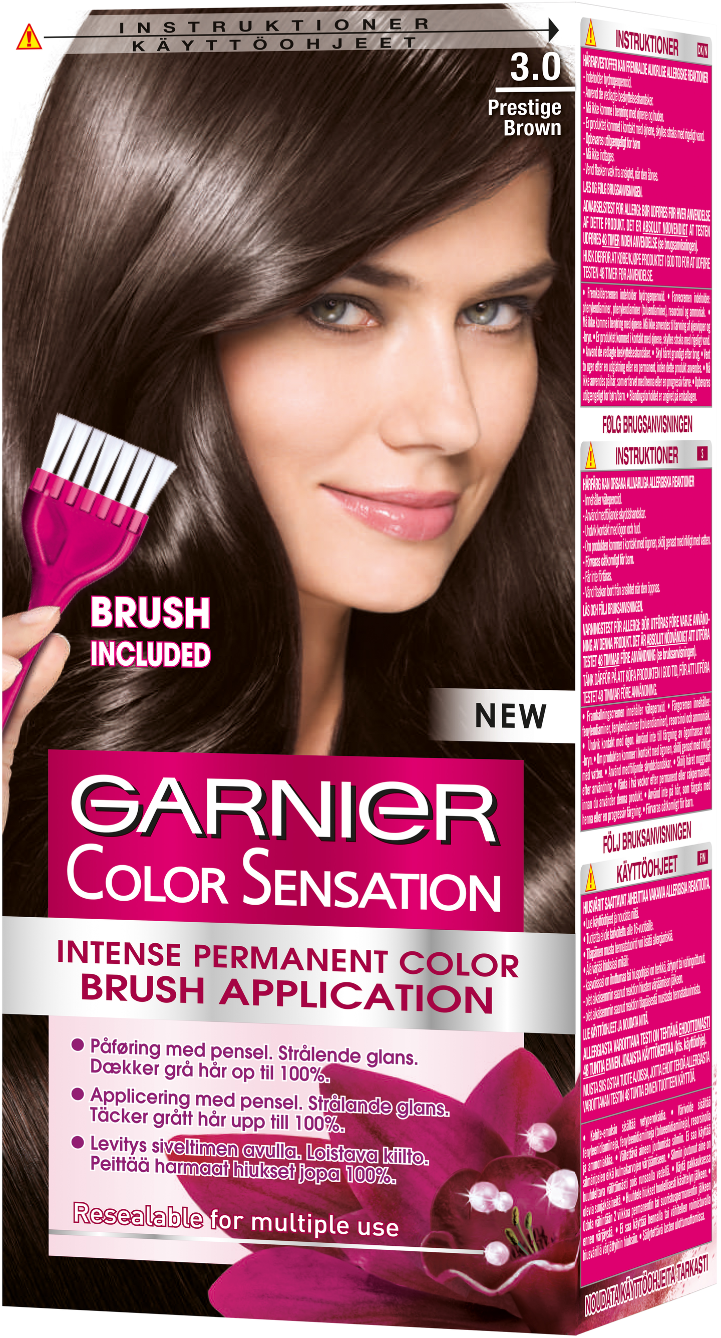 Garnier Color Sensation 3.0 Prestige Brown -kestovärin intensiiviset pigmentit ja Fade Resist-teknologia antavat jopa 10 viikkoa kestävän värjäystuloksen ja peittävät 100% harmaista hiuksista.