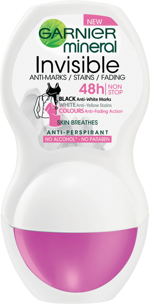 Garnier Mineral antiperspirant roll on 50ml Woman Invisible Black, White&Colors