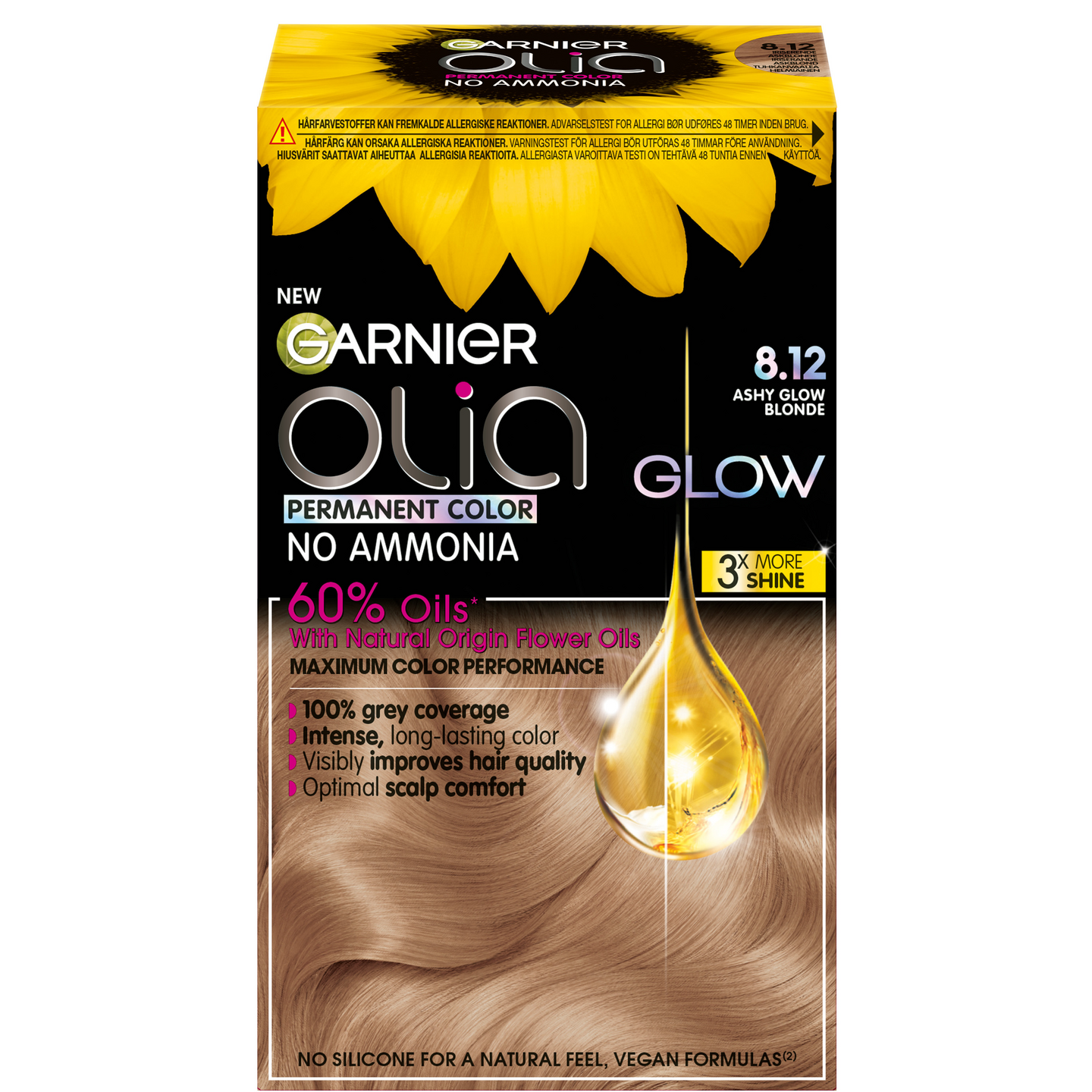 Garnier Olia 8.12 on kestoväri ilman ammoniakkia, joka antaa intensiivisen hiusvärin kylmillä vivahteilla ja upeaa kiiltoa. Koostumus sisältää 60% öljyjä* ja se peittää harmaat hiukset 100 %. Tuloksena kaunis. pitkäkestoinen hiusväri ja näkyvästi parempi hiuslaatu. Vegaaniset koostumukset* - Kestoväri - Ilman ammoniakkia - 100% harmaiden peitto - Intensiivinen, pitkäkestoinen hiusväri - Tekee hiuslaadusta näkyvästi paremman - Vegaaniset koostumukset* - Koostumus sisältää 60% öljyjä* - Pakkaus sisältää: 1 värivoide, 1 kehite, 1 hoitoaine, 1 käyttöohjeet, 1 pari suojakäsineitä *Värivoiteessa **Ei sisällä eläinperäisiä ainesosia
