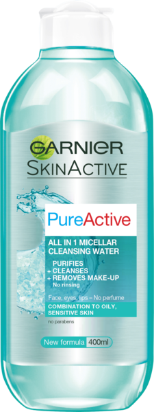 Garnier SkinActive Pure Active All-in-1 Micellar puhdistusvesi 400ml rasvoittuvalle ja sekaiholle