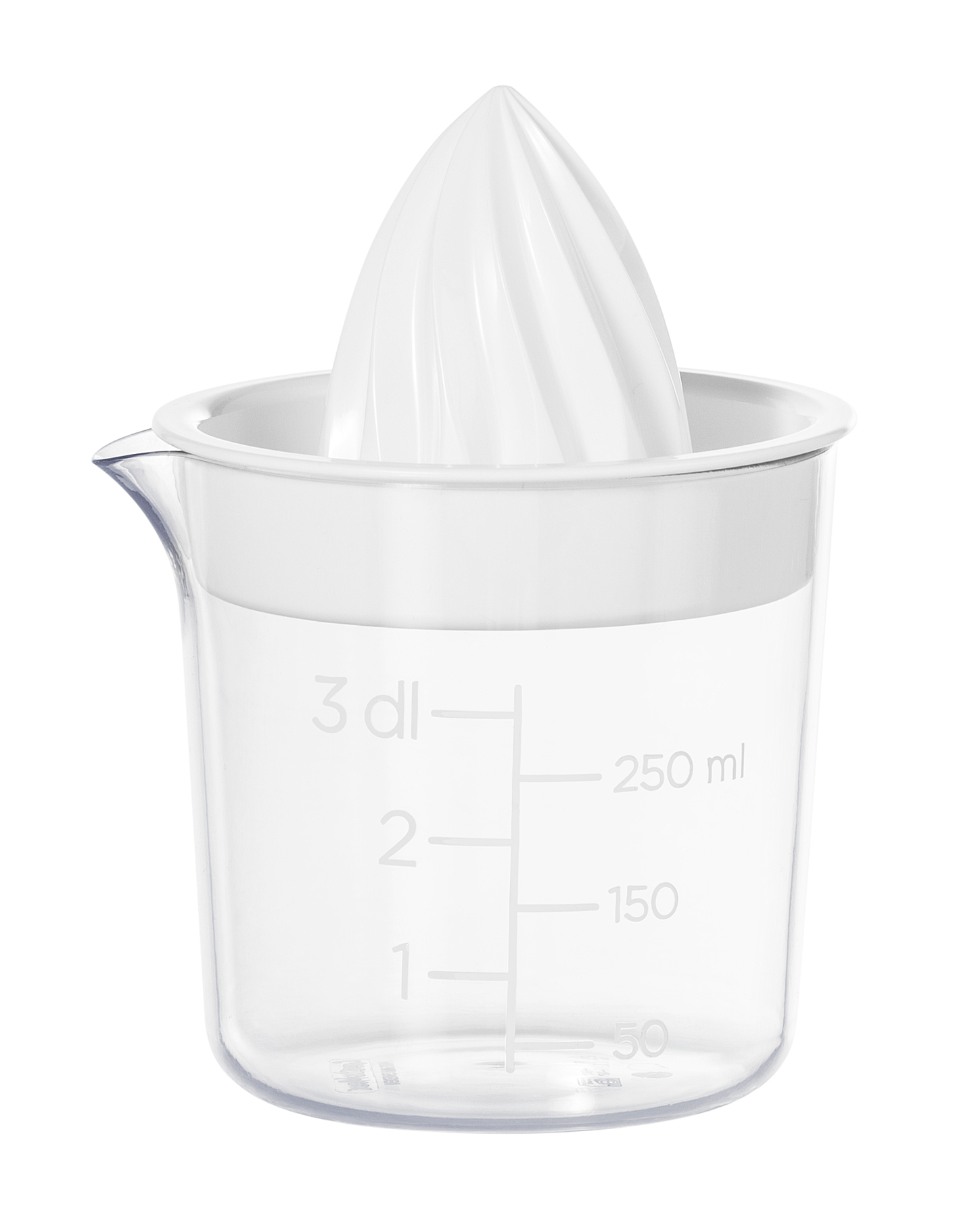 Läpinäkyvä 0,3 L sitruspuristin selkeällä mitta-asteikolla. Spiraalimuoto tekee mehun pusertamisesta helppoa ja tehokasta. Mittasarjan tuotteet pinoutuvat sisäkkäin säästäen säilytystilaa. Valmistettu BPA-vapaasta materiaalista. Konepesunkestävä. Maksimikäyttölämpötila +90°c.