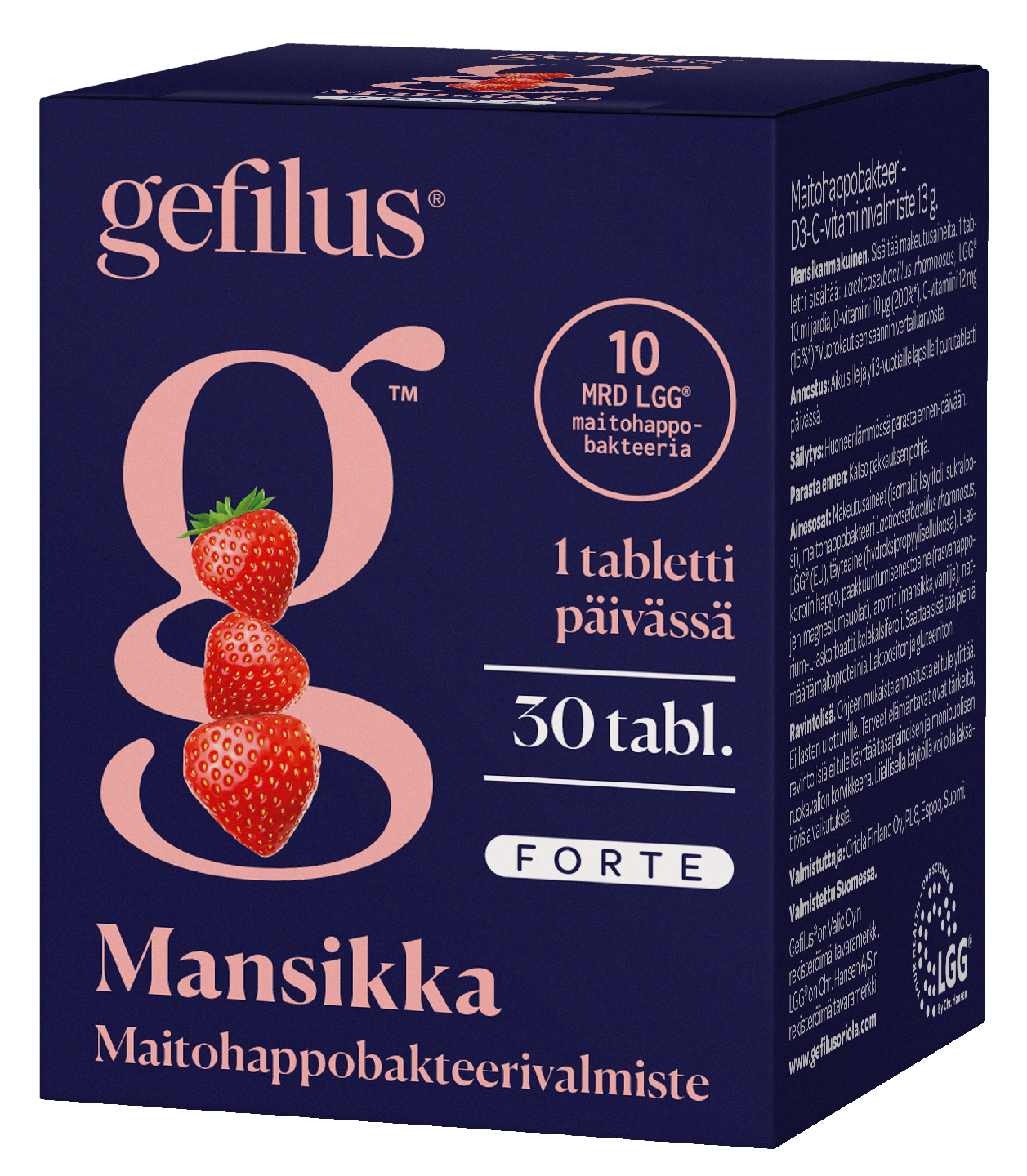 Gefilus Forte mansikka maitohappobakteeri-D3-C-vitamiinivalmiste purutabletti 30tabl ravintolisä