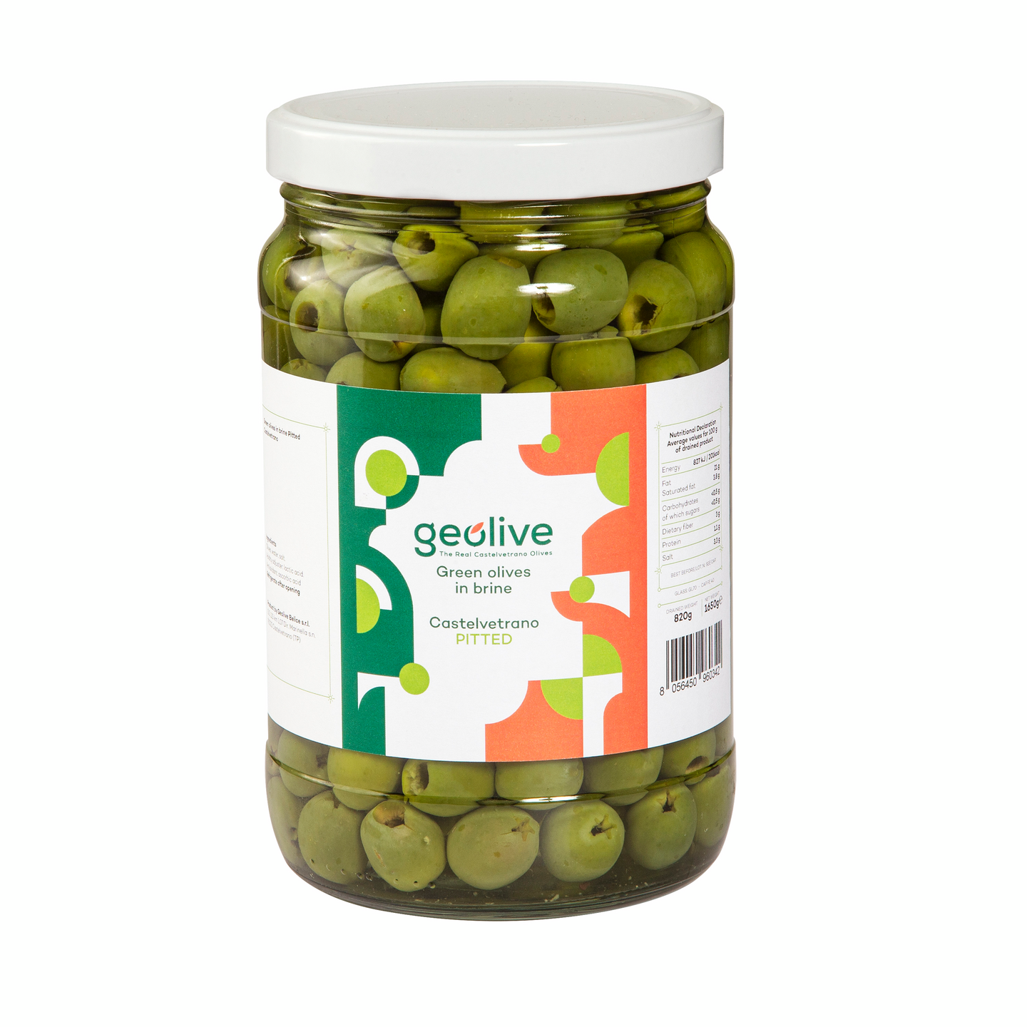 Geolive vihreät kivettömät Castelvetrano-oliivit suolaliemessä 1650g/820g