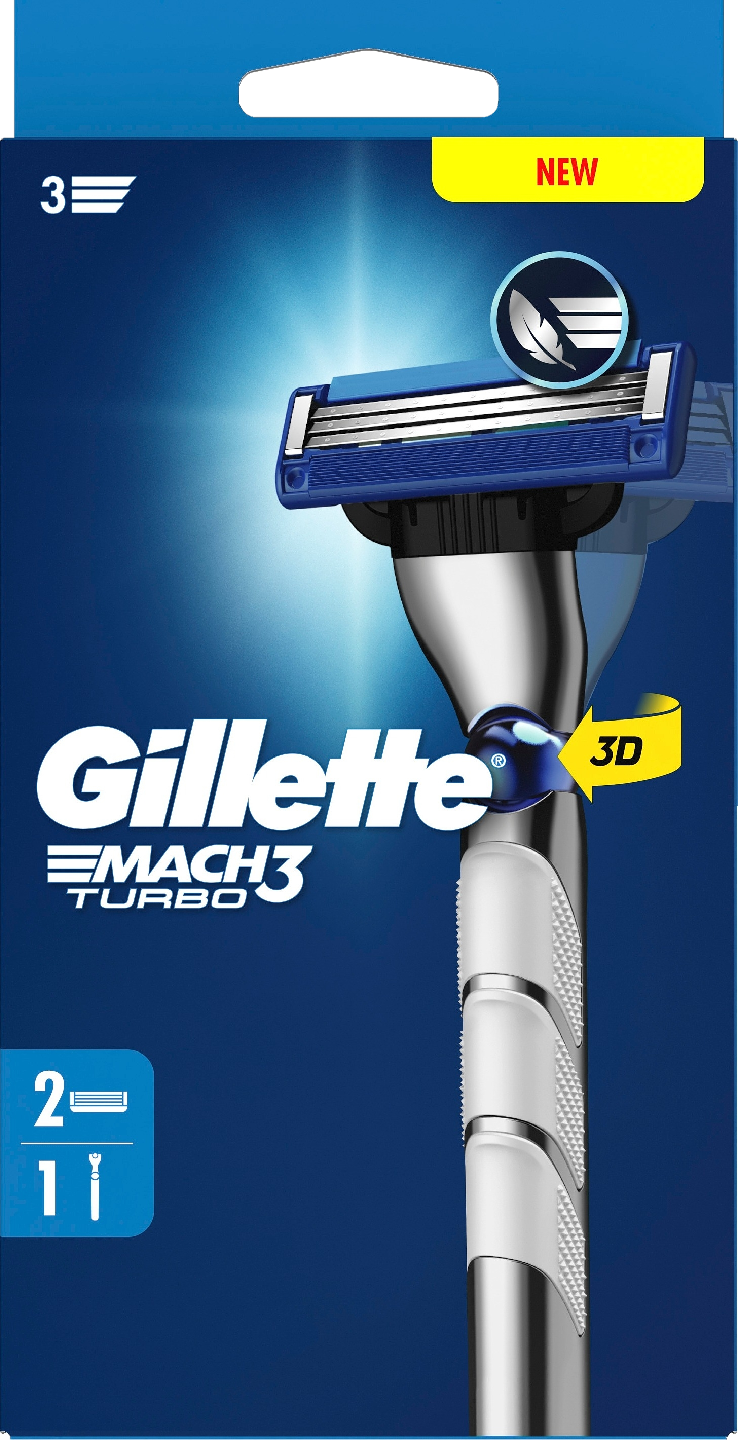 Koe klassinen ja tarkka ajo miesten Gillette Mach3 Turbo -höylällä. Tässä höylässä on terät, jotka on suunniteltu vähentämään ihoon kohdistuvaa rasitusta ja varmistamaan sileä ja miellyttävä ajokokemus. Mach3 Turbo -malliin kuuluu. Parannettu voitelunauha pehmeämpää liukua varten, mikä takaa miellyttävämmän ajokokemuksen. Jokainen vaihtoterä tarjoaa jopa 15 ajoa (*perustuu 3 ajoon viikossa). Höylässä on Microfin Guard, joka valmistelee ihon parranajoa varten ja tekee parranajosta miellyttävämpää.