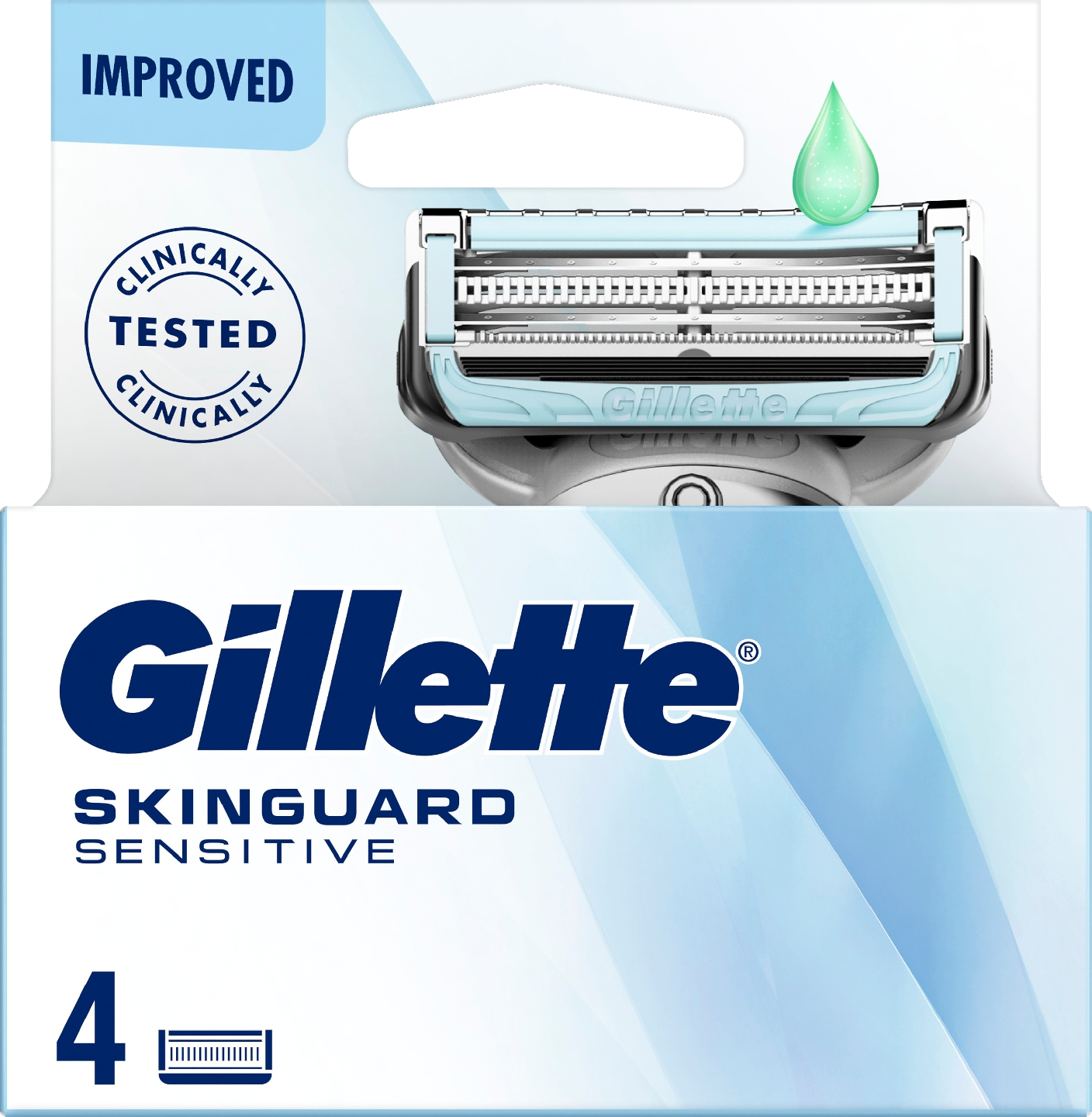 Gillette SkinGuard Sensitive -partahöylien vaihtoterät on suunniteltu akneen ja näppylöille taipuvaisen ihon ajamiseen. Ainutlaatuinen SkinGuard-teknologia suojaa ihoa teriltä ja auttaa vähentämään ihoärsytystä. Lisäksi kaksi vähällä voimalla leikkaavaa terää auttaa vähentämään nykimistä ja vetämistä.