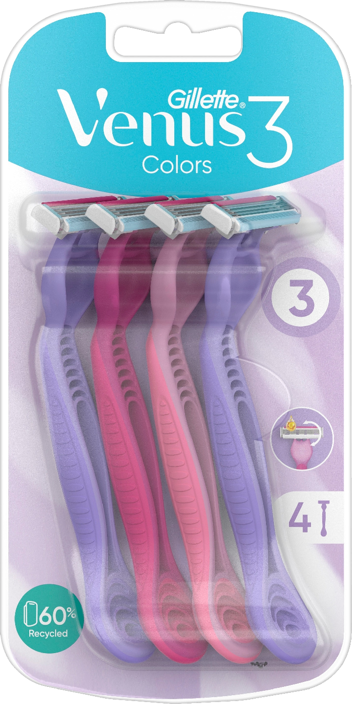 Gillette Venus Comfort Colours -kertakäyttöhöylät tarjoavat tarkan ajon uskomattoman edullisesti. Näiden höylien moniväriset varret tekevät ajosta hauskan ja värikkään kokemuksen. 3-teräisessä kääntyvässä päässä on Lubrastrip-nauha, joka antaa liukuvuutta hankalilla alueilla. Nauti tarkasta ja miellyttävämmästä ajosta (verrattuna Venus Simply 2 -höylään).