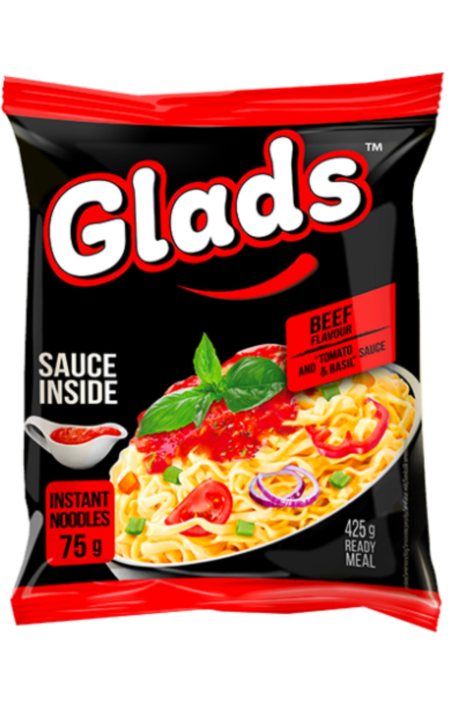 Glads Naudanlihanmakuinen pikanuudeli tomaattibasilikakastikkeella 75g