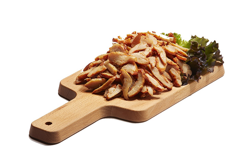 Broilerinliha, vesi, mausteet (paprika, oregano, meirami, sipuli, valkosipuli, juustokumina), perunatärkkelys ja -kuitu, herneproteiini, dekstroosi, jodioitu suola, stabilointiaineet (E450, E451), hiivauute, paprikauute. Broilerilihan alkuperämaa: Suomi.