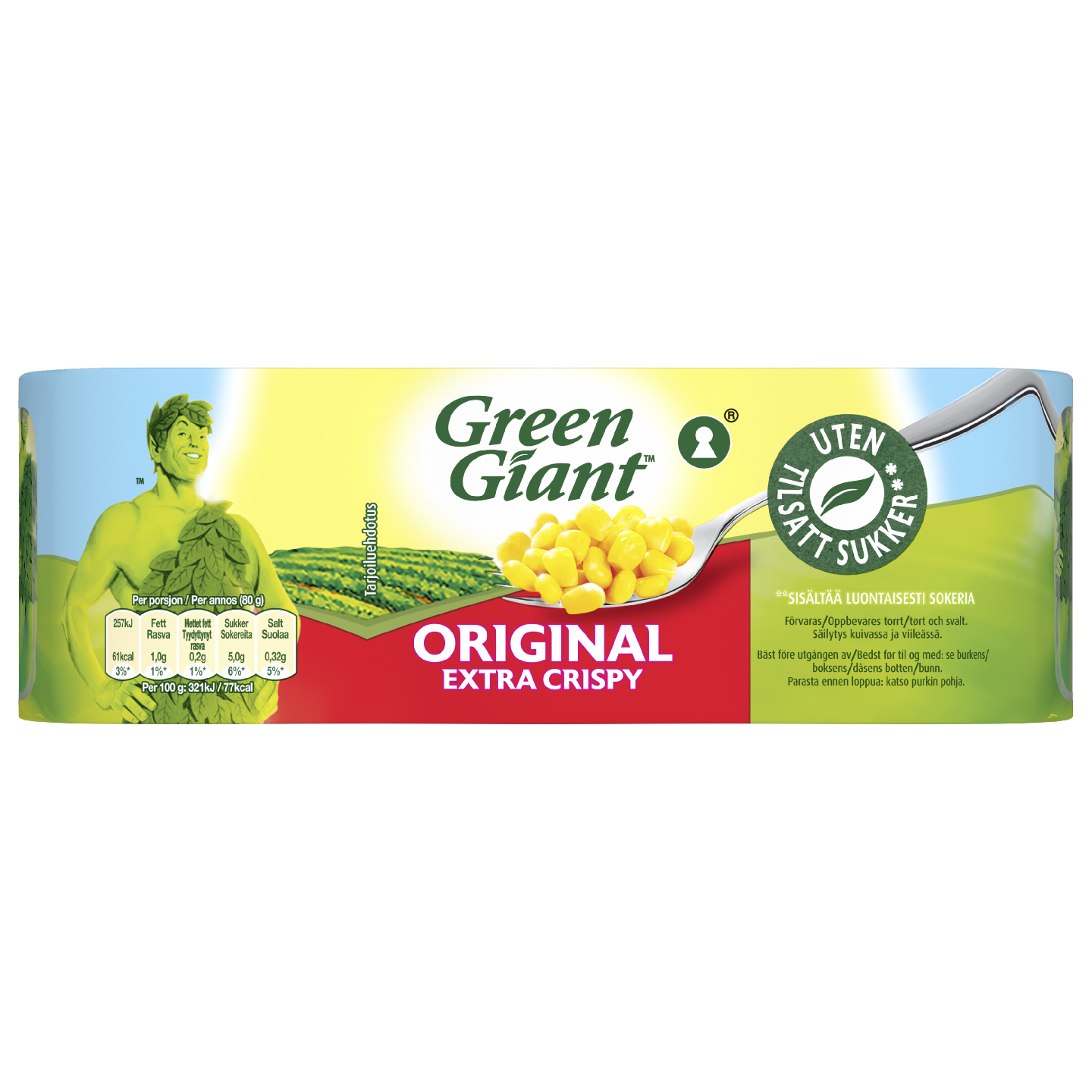 VegaaninenGreen Giant maissin makean ja rapean maun salaisuutena on huolellisesti valikoidut lajikkeet Etelä-Ranskasta. Se pakataan tölkkeihin 12 h kuluessa sadonkorjuusta.