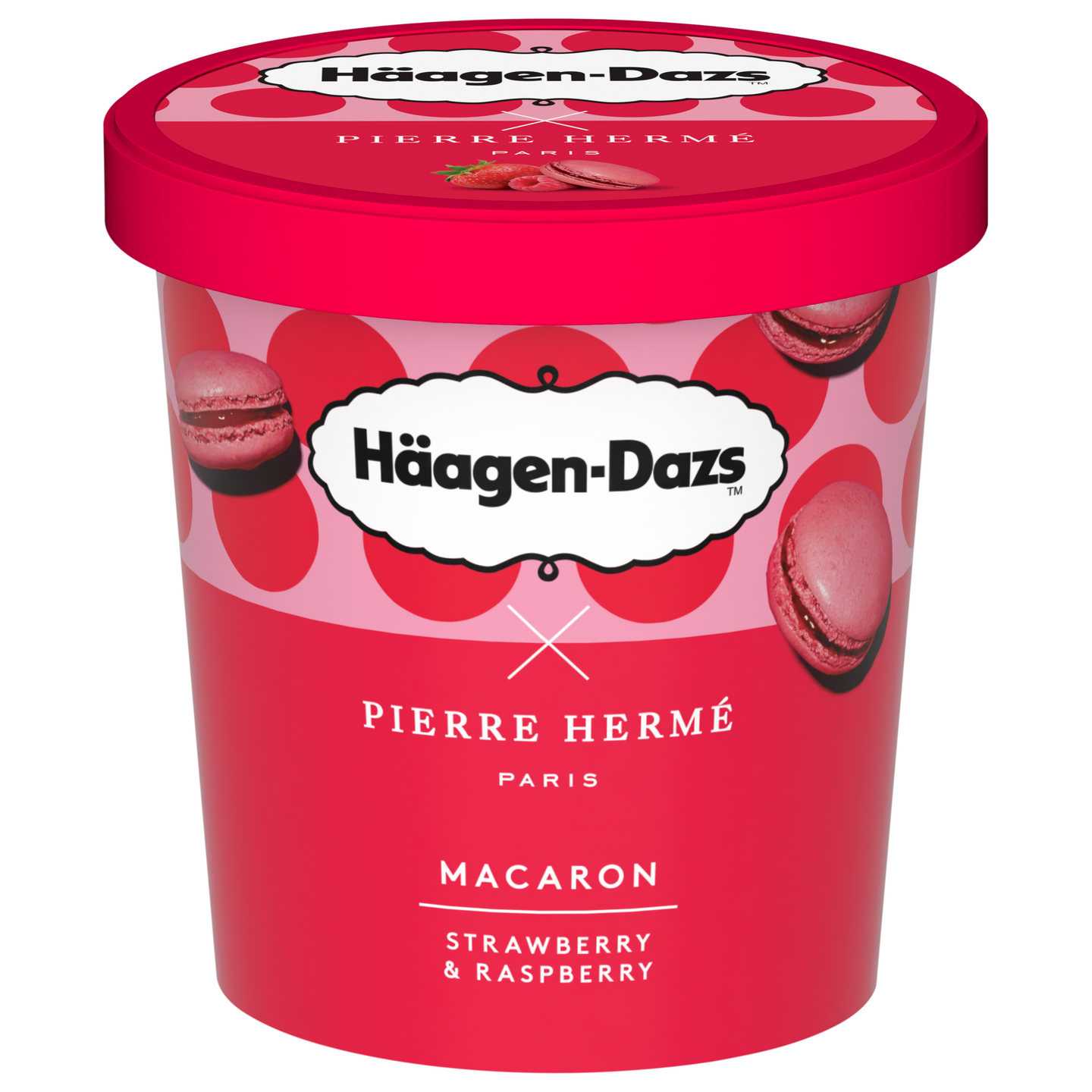 Ensimmäinen laatuaan oleva reseptiyhteistyö tunnetun ranskalaisen kondiittorin ja suklaavalmistajan Pierre Herme’n ja Häagen-Dazsin kanssa. Yhteistyössä luotu jäätelö yhdistää Ranskan klassisimman jälkiruoan ja ensiluokkaisen mansikkajäätelön, johon lisätty vadelmakastiketta sekä vaaleanpunaisia ja rapeita Macaron paloja. Koe leivoksille tunnusomainen mantelinmaku. Kokeile ja anna maun kuljettaa sinut Pariisiin!