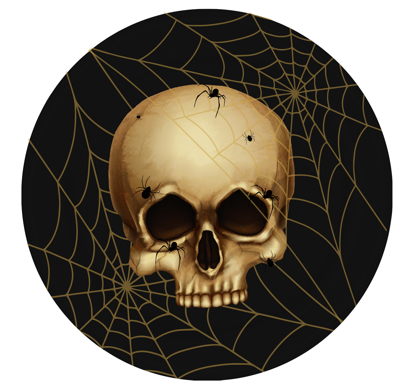 Pääkallo kartonkilautanen Halloween juhlakattaukseen! Lautasen koko n. 23 cm ja paketissa 10 kpl. Yhdistä muiden saman kattaussarjan tuotteiden kanssa.