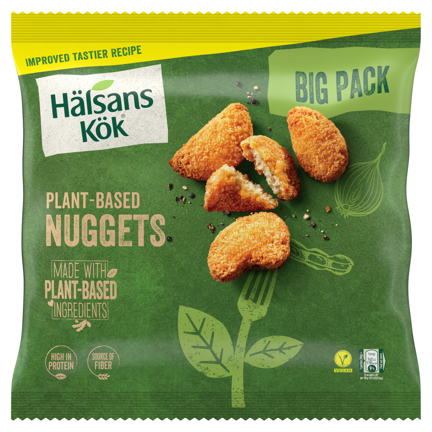 Hälsans Kök vegaaniset nuggetit 700g soijaproteiini pakaste