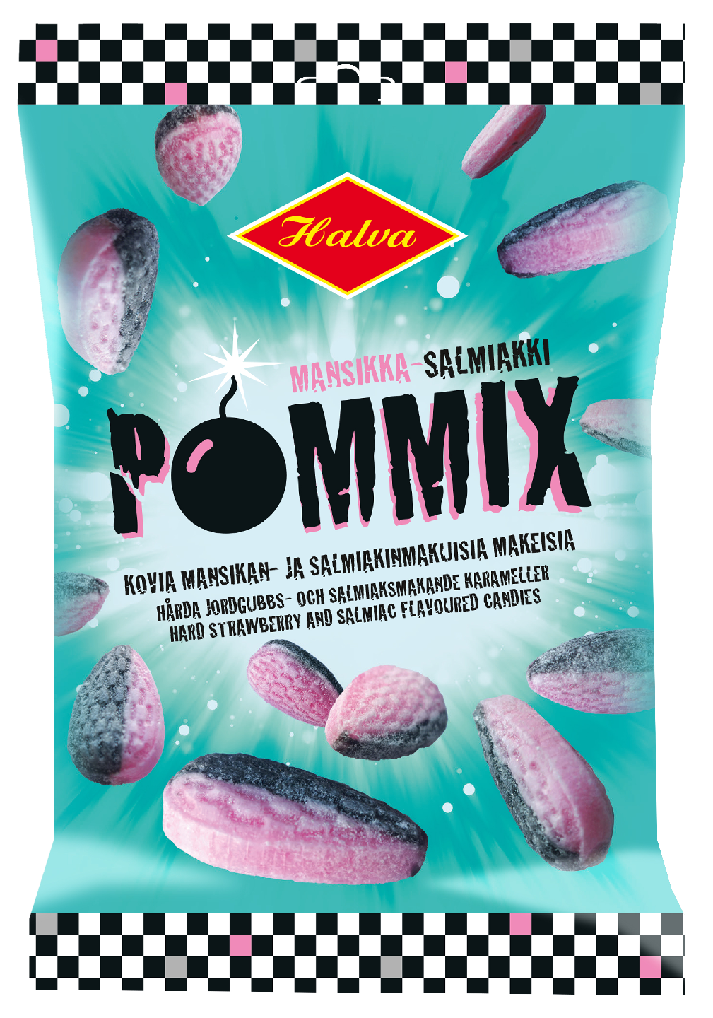 Halva Pommix kovia mansikan- ja salmiakinmakuisia makeisia 100g