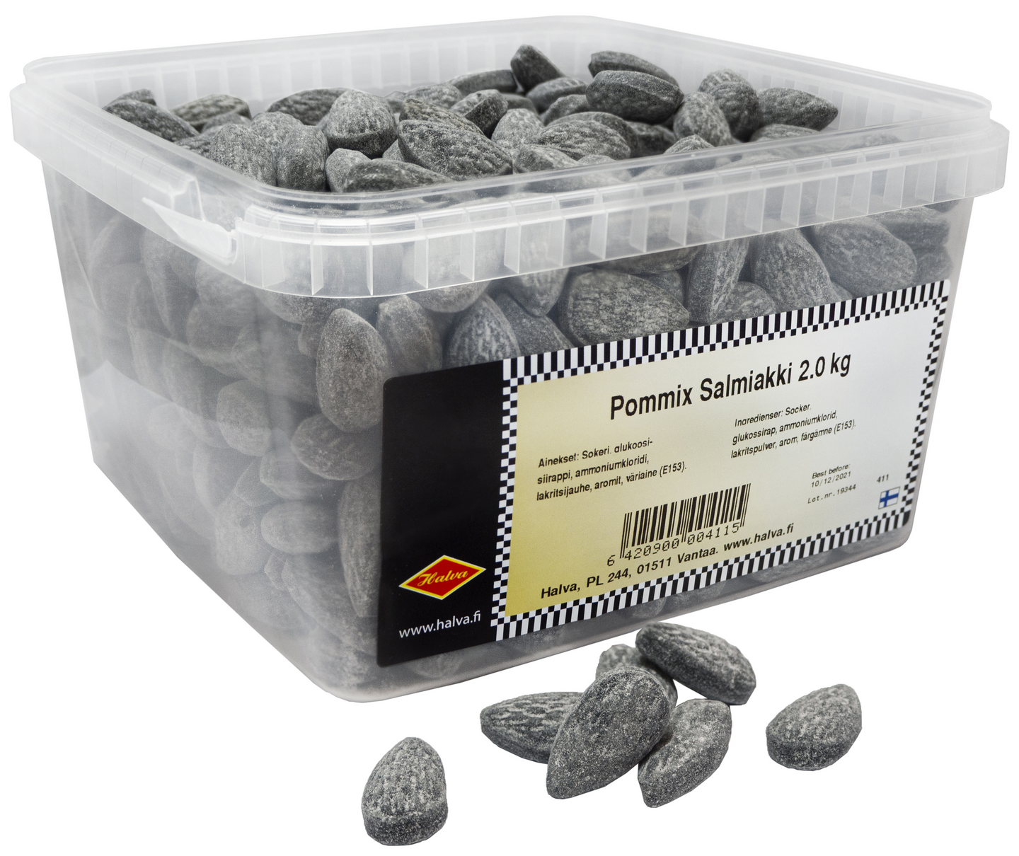 Sokeri, glukoosisiirappi, salmiakki (ammoniumkloridi), lakritsiuute, aromi, väri (E153)