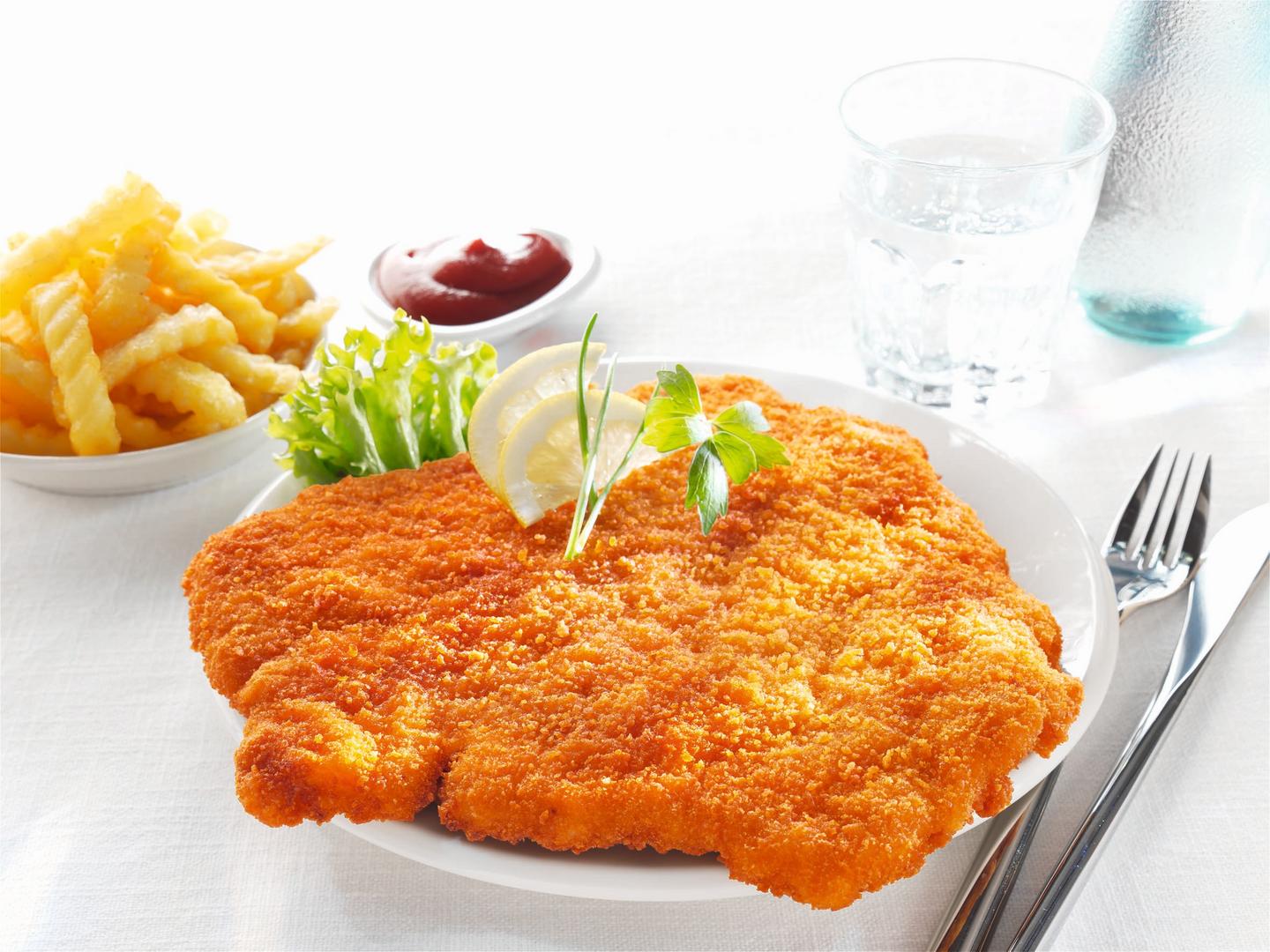 Porsaanliha (65%, Saksa), paneeraus (VEHNÄjauho, muunneltu tärkkelys, suola, hiiva, mausteet), 15% nestemauste (vesi, suola, glukoosi siirappi, valkopippuri).