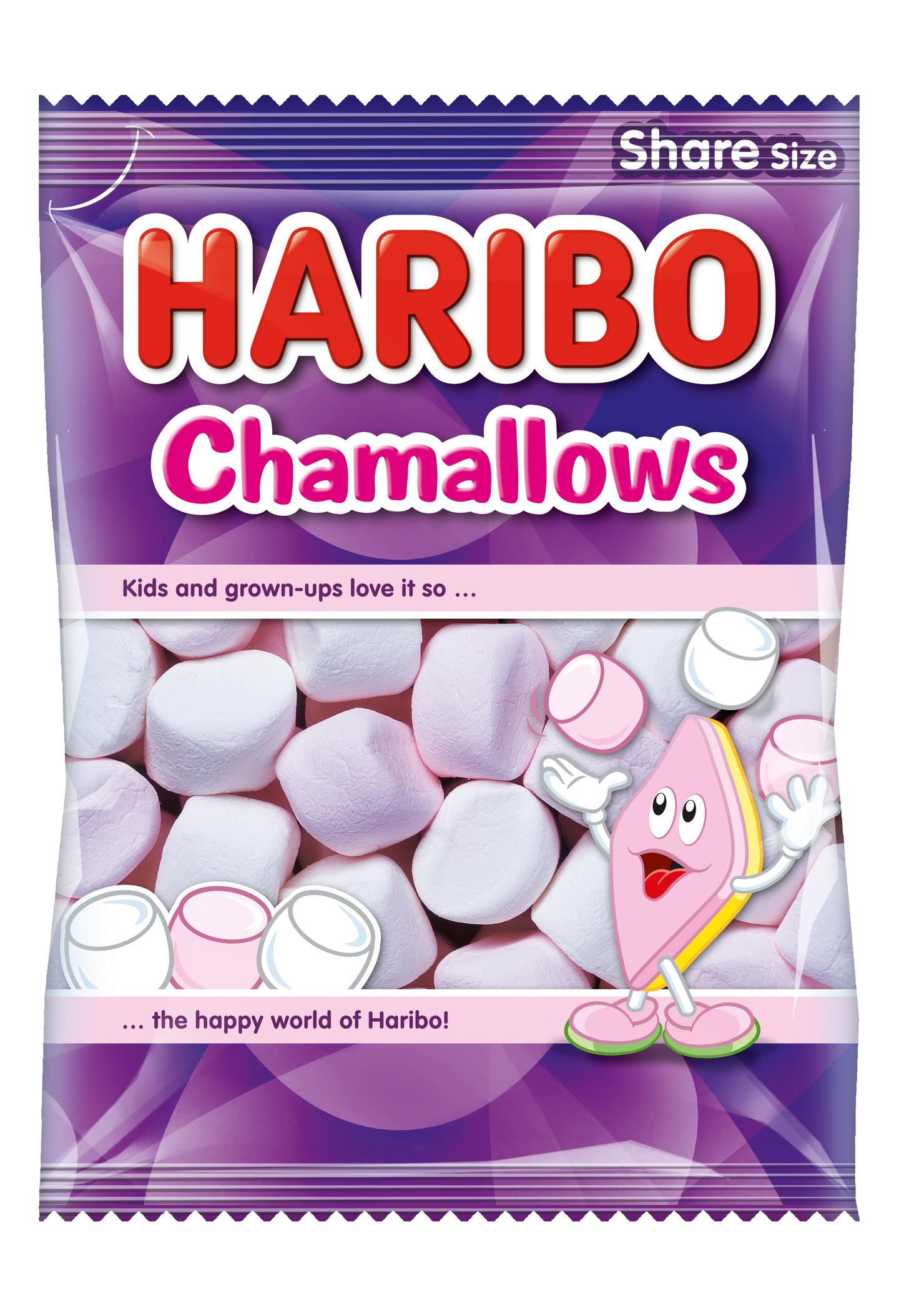 HARIBO Chamallows -vaahtokarkkipussi sisältää ihania, pehmeitä vaniljan- ja mansikanmakuisia vaahtokarkkipalloja. Jo 50 vuoden ajan Haribo on valmistanut näitä suussa sulavia vaahtokarkkiherkkuja. Voit paistaa niitä takassa, käyttää leivonnassa, tarjoilla juhlissa tai syödä ihan sellaisenaan. Kuka voisi vastustaa vaahtomakeisten makeaa pehmeyttä?