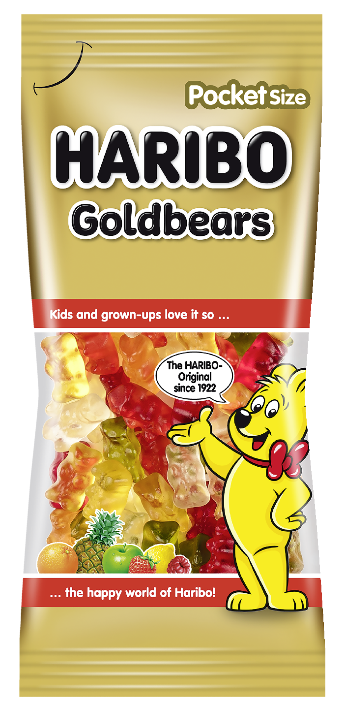 HARIBOn alkuperäiset, ikoniset Goldbears-nallekarkit ovat ilahduttaneet lapsia ja aikuisia jo vuodesta 1922. Goldbearskarkkipussista löytyy nallekarkkeja hedelmäisissä mauissa (mansikka, appelsiini, omena, vadelma, sitruuna ja ananas) ja kuudessä eri värissä. Vastustamatonta iloa, jota voit jakaa muiden kanssa!