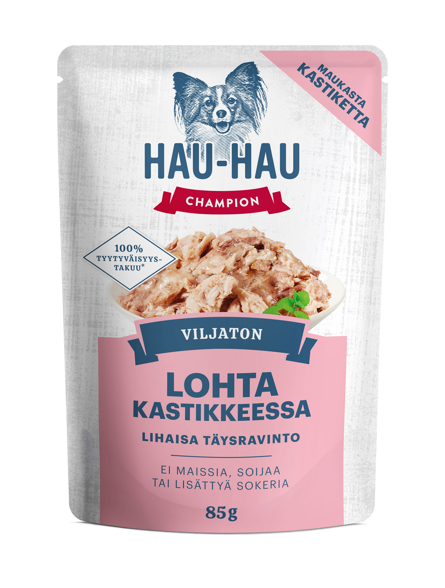 - Viljaton täysravinto - Valmistettu tuoreesta lihasta - Lihaisa ateria, proteiinista eläinperäistä 98 % - Kätevä pakkauskoko etenkin pienille koirille, maistuva lisä ateriaan isommille koirille - Reilusti maistuvaa kastiketta - Valmistettu Euroopassa Viljaton Hau-Hau Champion Lohta kastikkeessa -annosateria on lihaisa ja käyttövalmis täysravinto, joka sisältää herkullista kalaa ja reilusti maistuvaa kastiketta. Aterian huolella suunniteltu resepti sisältää kaikki koirasi tarvitsemat ravintoaineet, joten se voidaan tarjoilla sellaisenaan. Maukkaan ja lihaisan koostumuksen ansiosta annosateriaa voidaan käyttää myös lisäämään kuivaruoan maistuvuutta. Annosateria ei sisällä lainkaan lisättyä sokeria, vehnää, maissia tai soijaa.