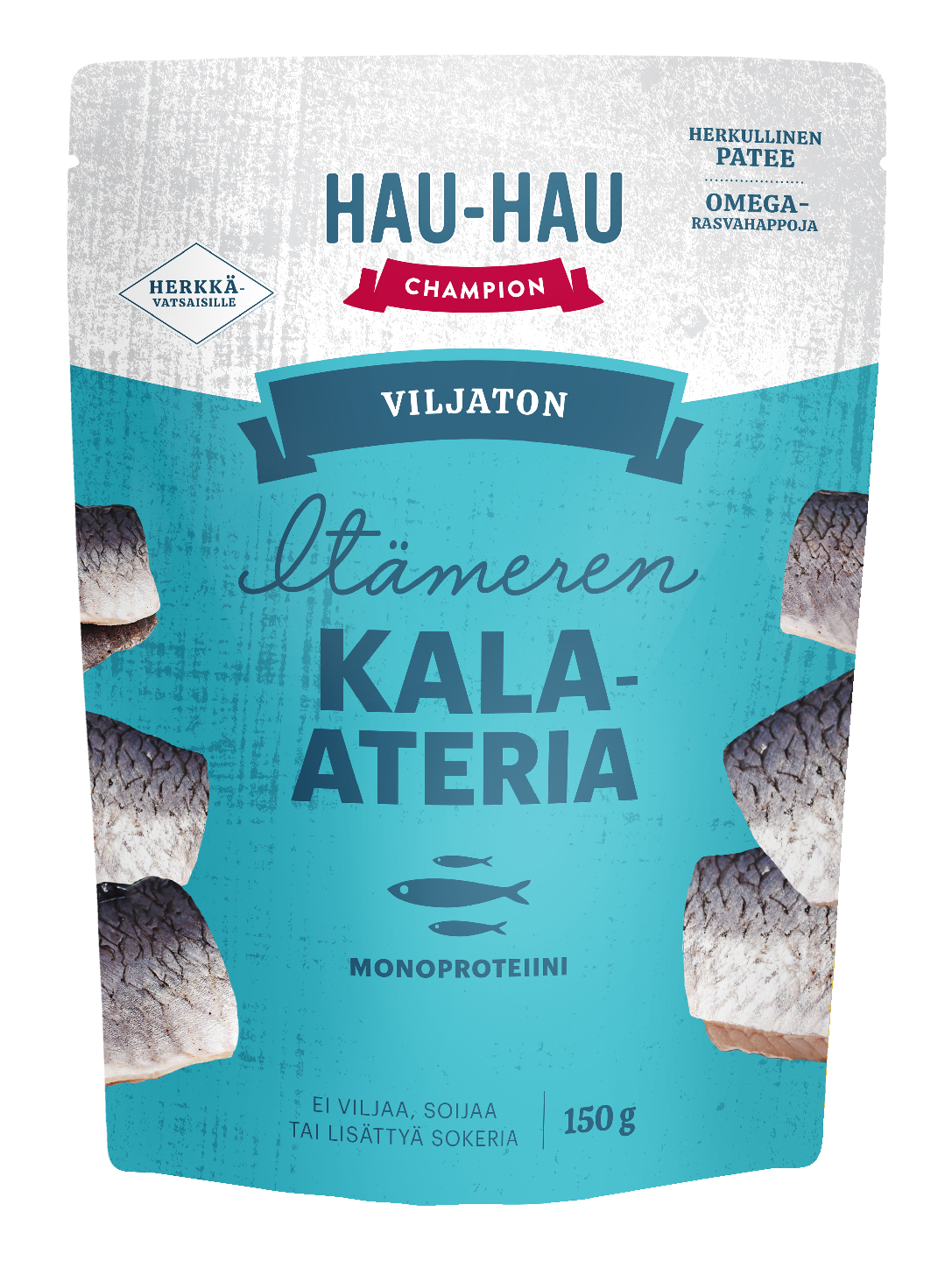 Hau-Hau Champion Viljaton Itämeren kala-aterian ainoat eläinproteiinin lähteet ovat Itämeren sillikalat silakka ja kilohaili. Vain kalaa sisältävä koiran märkäruoka on helppo valinta herkkävatsaiselle koiralle, jolle kaikki proteiininlähteet eivät sovi. Herkullinen patee sisältää Itämeren kalaa eikä lainkaan viljaa, soijaa tai lisättyä sokeria. Tarjoa lihaisa täysravinto koiralle sellaisenaan tai Hau-Haun nappuloiden kanssa. Nämä annosateriat on valmistettu Virossa, ja niiden raaka-aineet tulevat Euroopan alueelta.