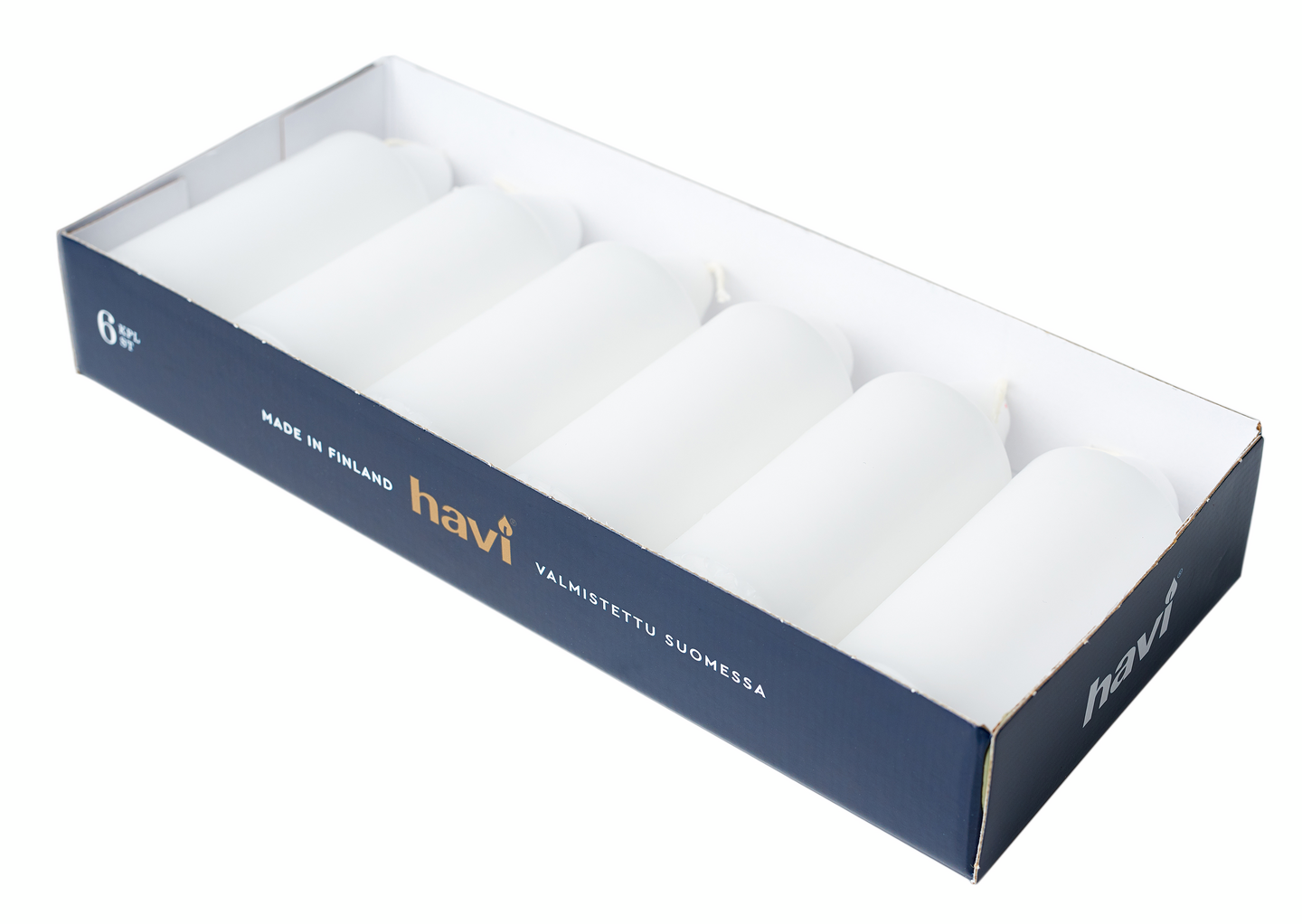 Havin kotimaiset lyhtykynttilät valkoinen 3,6x9cm 6 kpl, paloaika 12 h