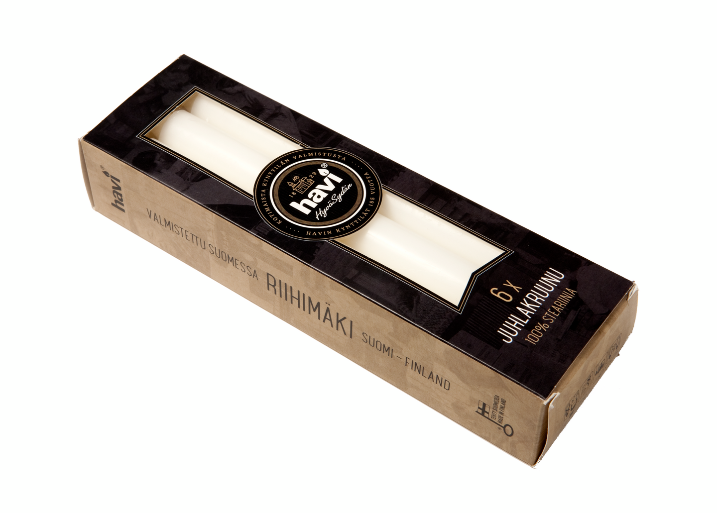 Havin kotimainen juhlakruunukynttilä 6 kappaleen pakkauksessa, paloaika 8 h