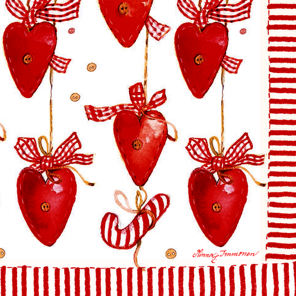Havin kotimaiset moniväripainetut 2-kertaisesta pehmopaperista valmistetut design lautasliinat, suunnittelija Minna Immonen. Lautasliinat ovat valmistettu Imatralla ja niillä on Avainlippu.