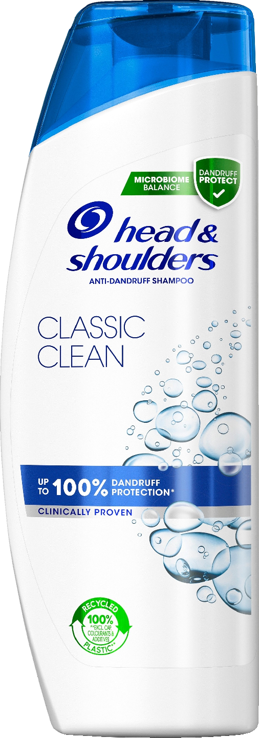 Head & Shoulders Classic Clean Hilseshampoo kaikille hiuksille & päänahoille, toimii jopa sitkeää hilsettä vastaan. Päivittäiskäyttöön sekä miehille että naisille tarkoitettu shampoo, jonka Microbiome Balance -koostumus iskee hilseen perimmäiseen syyhyn ylläpitäen tasapainoista päänahan mikrobiomia. Toimii sekä näkyvää että näkymätöntä hilsettä vastaan vapauttamalla 2x enemmän suojaavia ainesosia, jotka menevät huokosiin ja estävät lopulta pinttyneen hilseen palamisen. Siinä on kliinisesti todistettu, dermatologisesti testattu ja pH-tasapainoinen koostumus, joka jättää päänahan ja hiukset puhtaiksi ja raikkaiksi.