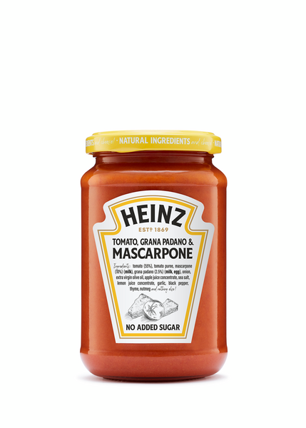 Tomaatti (55 %), tomaattipyree, mascarpone-juusto (10 %) (MAITO), grana padano -juusto (2,5 %) (MAITO, KANANMUNA), sipuli, extra virgin oliiviöljy, omenamehutiiviste, merisuola, sitruunamehutiiviste, valkosipuli, mustapippuri, timjami, muskottipähkinä.