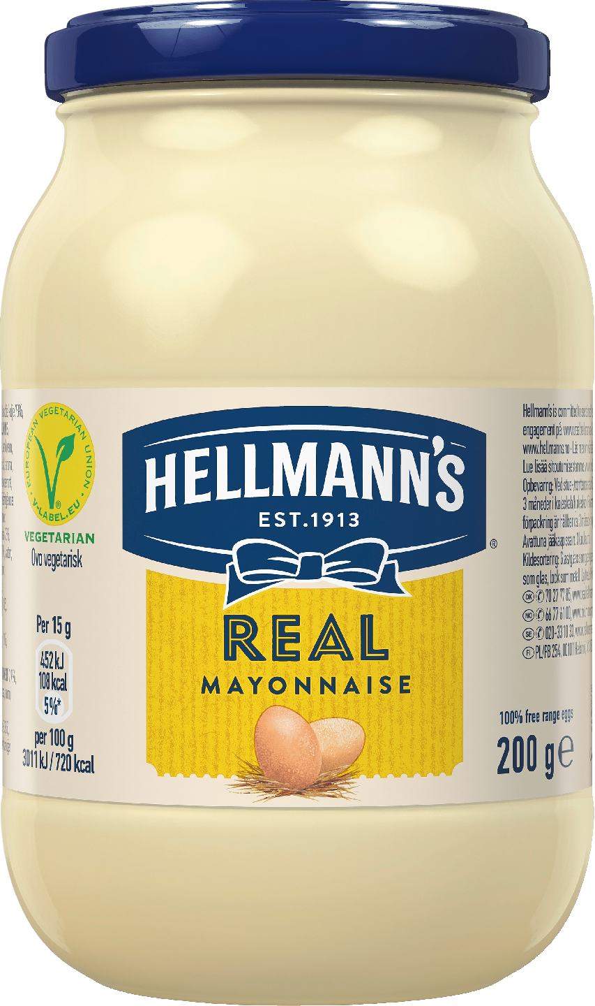 Hellmann's Real -majoneesi tunnetaan yksinkertaisista ja laadukkaista raaka-aineista, jotka antavat majoneesiin pehmeän kermaisen maun. Hellmann's Real on maailman myydyin majoneesi, amerikkalainen klassikko, jonka valmistukseen käytetään vapaa kanaan munia. Hellmann's Real sopii mainiosti salaatteihin, on herkullista sellaisenaan hampurilaisen kanssa sekä omiaan täytettyihin voileipiin. Hellmann's Real -majoneesi käy mainiosti myös ruoanlaittoon ja leivontaan. Hellmann's Real -majoneesissa on runsaasti ravitsemissuositusten mukaisia omega-3-rasvahappoja ja tyydyttymättömiä rasvoja.