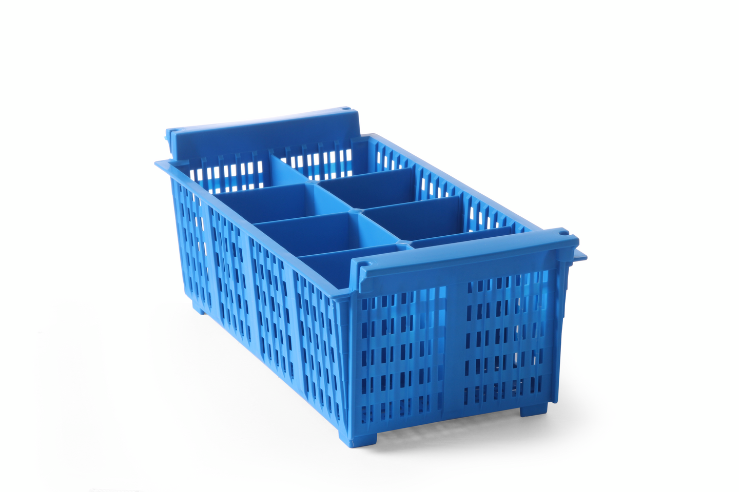 Hendi-pesulokerikko aterimille on käytännöllinen ja tyylikäs ratkaisu aterimien järjestämiseen astianpesukoneessa. Kestävä aterinteline ja sen kahdeksan lokerikkoa auttavat estämään aterinten leviämisen pesukoneessa pesusyklin aikana. Perforoidut seinämät varmistavat tehokkaan vedenpoiston, mikä helpottaa puhtaanapitoa. Sopii erinomaisesti ammattikeittiöihin.