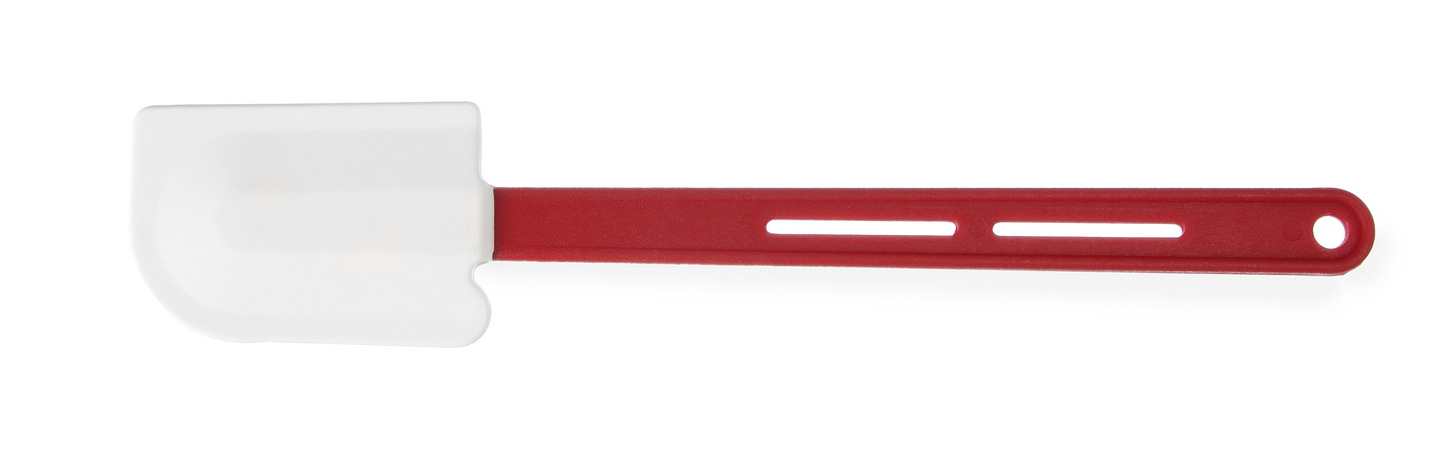 Kaavin keittiötöihin. Taikinakaapimen/nuolijan varsi polyamidia, teräosa silikonia.