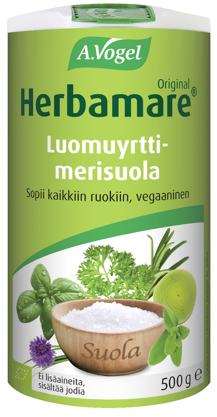 Herbamare on maukas, runsasarominen luomuyrttisuola, joka sopii lähes kaikkeen ruoanlaittoon. Herbamaren merisuola kerätään perinteisellä menetelmällä Etelä- Ranskasta Camarguen alueelta, josta parhaat merisuolat ovat peräisin. Yrtit ovat puhdasta luomua. Ei sisällä natriumglutamaattia eikä keinotekoisia lisäaineita, vegaaninen. Sisältää luonnonmukaista jodia merilevästä.