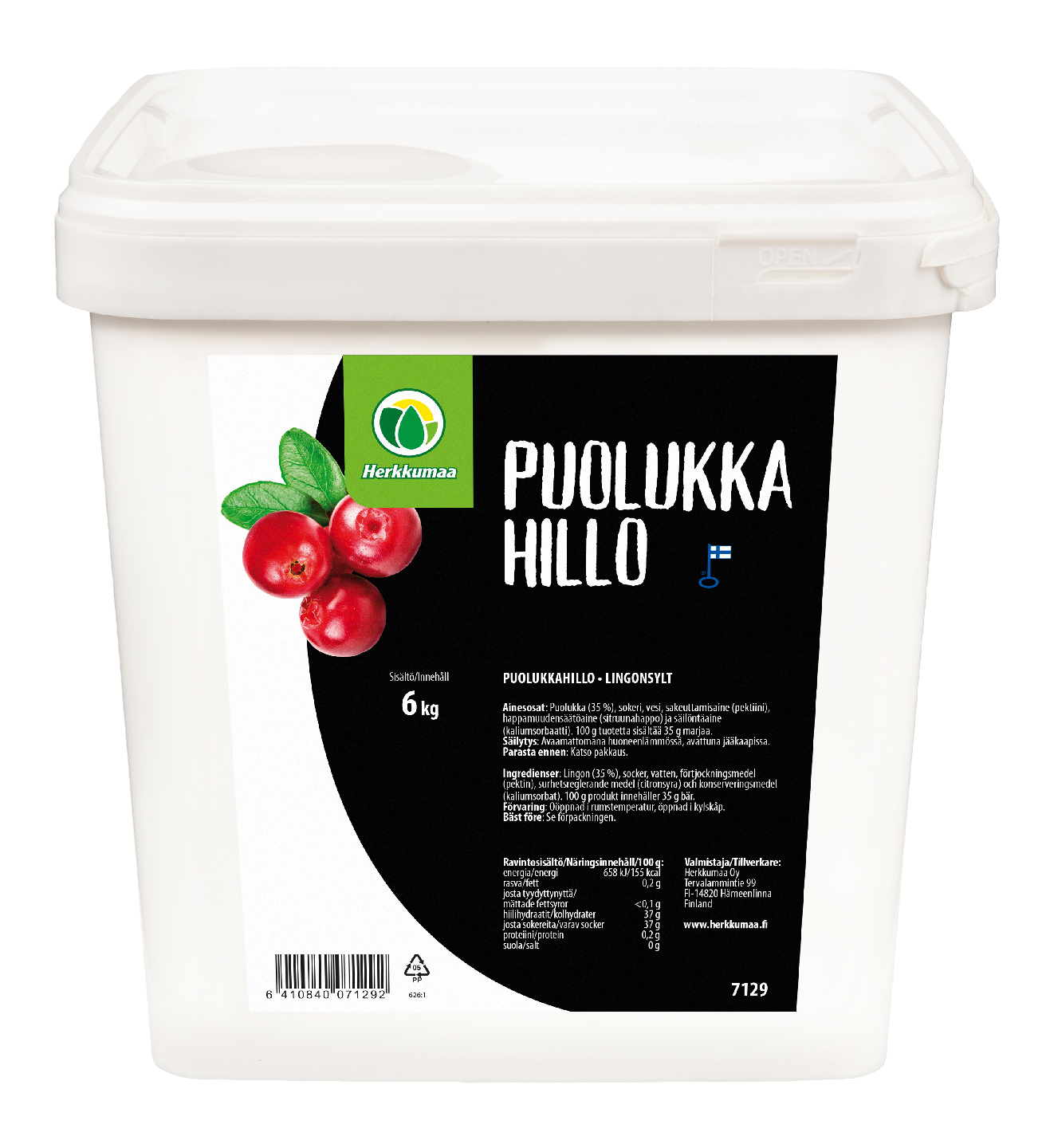 Makea ja kirpeä Herkkumaa puolukkahillo on varsinaista herkkua pinaattilättyjen, kaaliruokien ja mustamakkaran kanssa. Puolukkahillo on saatavana 6 kg:n kantikkaassa sangossa.