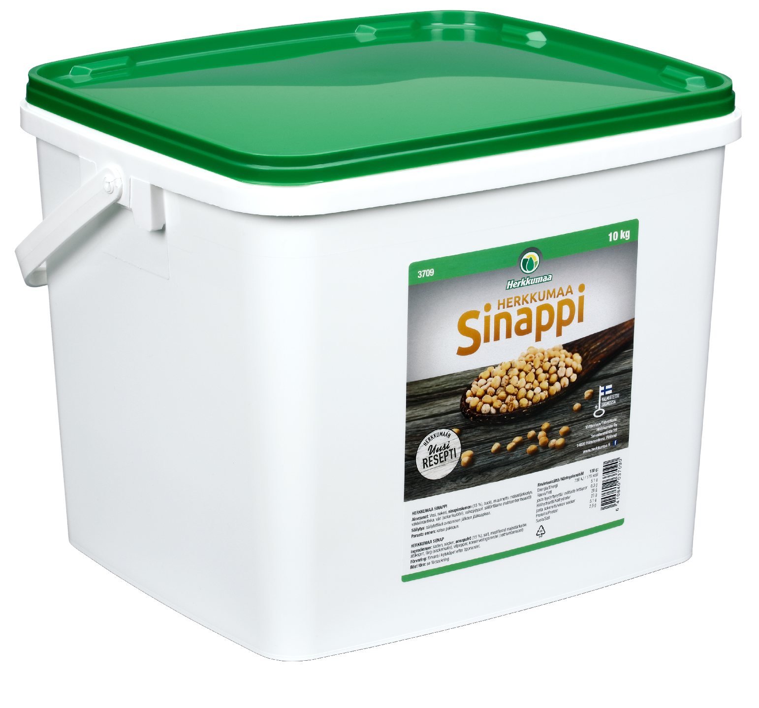 LaktoositonHerkkumaa Sinappi kuuluu arkeen ja juhlaan. Sinappi löytää tiensä niin hernekeittoon, makkararuokiin, kastikkeisiin kuin hampurilaisiin. Pehmeän täyteläinen sinappi maistuu lapsille ja aikuisille. Sinapin suuratalouskeittiöihin soveltuva pakkaus on helposti aukeava 10 kg kantikas rasia. Kantikkuus säästää tilaa jopa 33 % verrattuna vastaavan tilavuuden pyöreään sankoon.