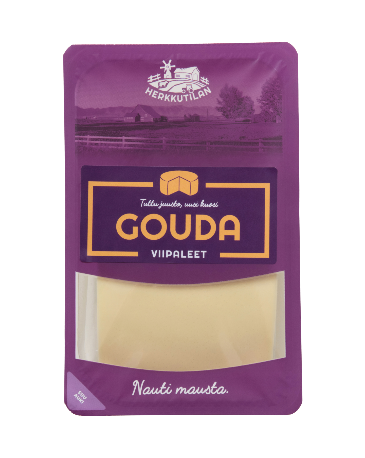 Herkkutilan Gouda on maukasta leivän päällä ja maistuu myös sellaisenaan pikkuvälipalana. Hollantilaisen kaupungin mukaan nimetty gouda on puolikova klassikkojuusto, jossa voi havaita vienon vivahteen myös makeutta. Se sopii täydellisesti niin suolaisiin leivonnaisiin, piiraisiin ja muffinsseihin kuin croissantinkin väliin. Saatavilla palana ja viipaleina.